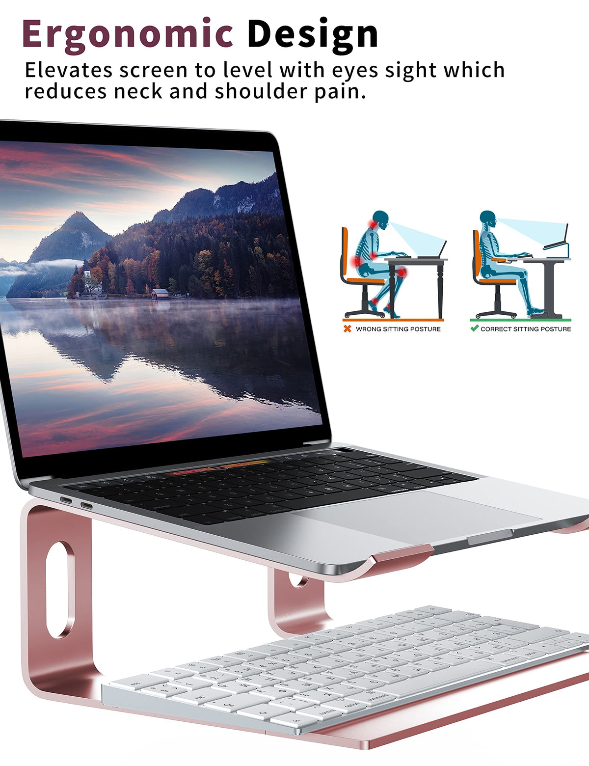 Alashi Laptop Stand For Desk, Aluminum Computer Riser, Ergonomic Notebook Holder, Detachable Metal Laptops Elevator, Pc Cooling