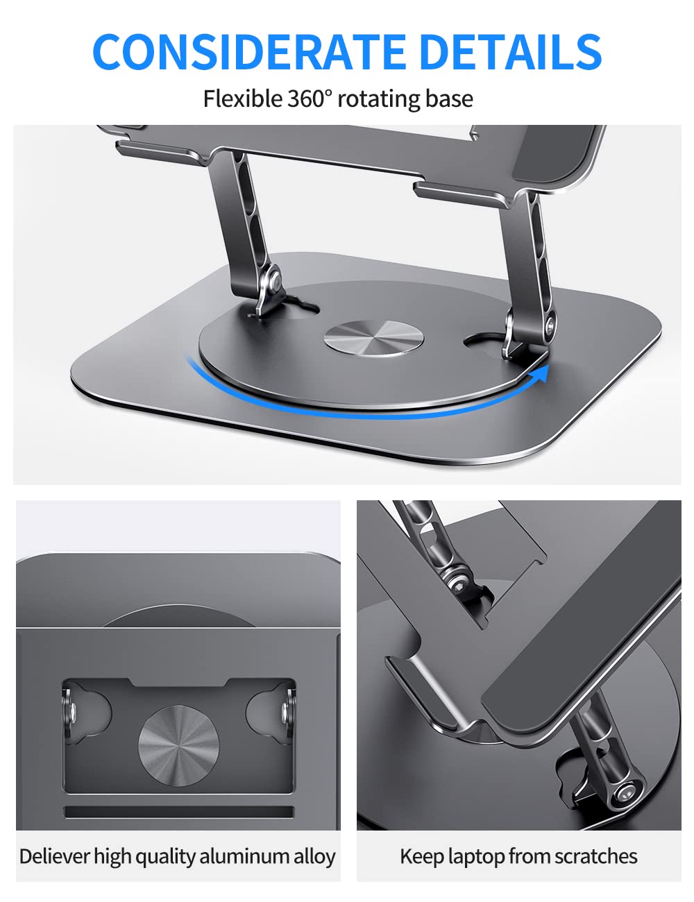Aoevi Adjustable Laptop Stand With 360 Rotating Base, Computer Stand For Laptop Ergonimic Foldable Laptop Riser For Desk Compati