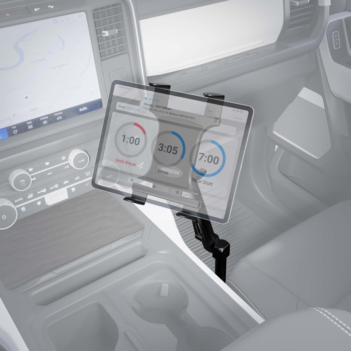 The Tab801 Car Or Truck Seat Rail Tablet Mount Can Be Used With All Large Tablets 7 To 18.4 Inches In Screen Size, Including Apple Ipad Pro, Ipad Air 2 And Ipad Air, Ipad 4, 3, And 2, Samsung Galaxy View, Galaxy Note 10.1, Galaxy Note Pro 12.2, Galaxy Tab 4 10.1, Galaxy Tab Pro 10.1 And 12.2, Galaxy Tab A 8.0, Galaxy Tab E 8.0, Galaxy Tab S 10.5, Google Pixel C, Microsoft Surface Pro, Nexus 10, And Nexus 9, Lg G Pad 10.1, Sony Xperia Tablet Z4 And Tablet Z. This Mount Includes Arkons Slim-Grip Universal Tablet Holder And Heavy-Duty Aluminum Seat Rail Mounting Pedestal With 22 Adjustable Arm. The Slim-Grip Tablet Holder Fits Tablets 7 To 18.4 Inches In Screen Size. The Holder Features A Spring-Loaded Design That Makes It Easy To Insert Or Remove The Tablet By Pushing Down On The Lower Legs Of The Holder With One Hand. Included With The Holder Are 10 Support Legs (4 Short, 2 Medium And 4 Long Versions). Choose The 4 Legs That Provide The Best Fit For Your Tablet. These Insert At The Top And Bottom Of The Holder And Can Be Easily Adjusted In Order To Keep Any Side Buttons And Ports Unobstructed. For Most Large Tablets, The Best Mount Holder Configuration Is To Attach 2 Short Support Legs On Top And The 2 Long Support Legs On The Bottom Of The Holder. For Smaller Tablets, Use All 4 Short Support Legs On The Holder. For Larger Tablets Including Ipad Pro, Use All 4 Long Legs. For Vertical Viewing, Adjust The 360-Degree Swivel. The Aluminum Car Seat Rail Mount Features Three Adjustment Points And Is Ideal For Those Who Prefer Mounting Their Tablet Somewhere Other Than The Windshield Or Dash. Use A Socket Wrench To Install The Mount To The Cars Seat Rail. Bend The 22 Adjustable Arm For Exact Positioning Of The Tablet.