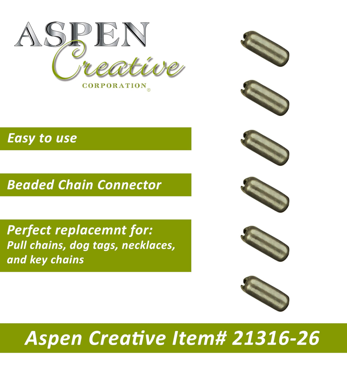 Aspen Creative Is Dedicated To Offering A Wide Assortment Of Attractive And Well-Priced Portable Lamps, Kitchen Pendants, Vanity Wall Fixtures, Outdoor Lighting Fixtures, Lamp Shades, And Lamp Accessories. We Have In-House Designers That Follow Current Trends And Develop Cool New Products To Meet Those Trends. Aspen Creative Offers A Six Pack Of Beaded Chain Connectors Plated In Antique Brass Finish.
