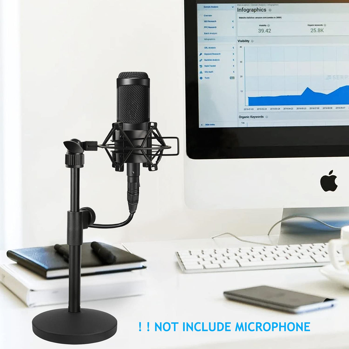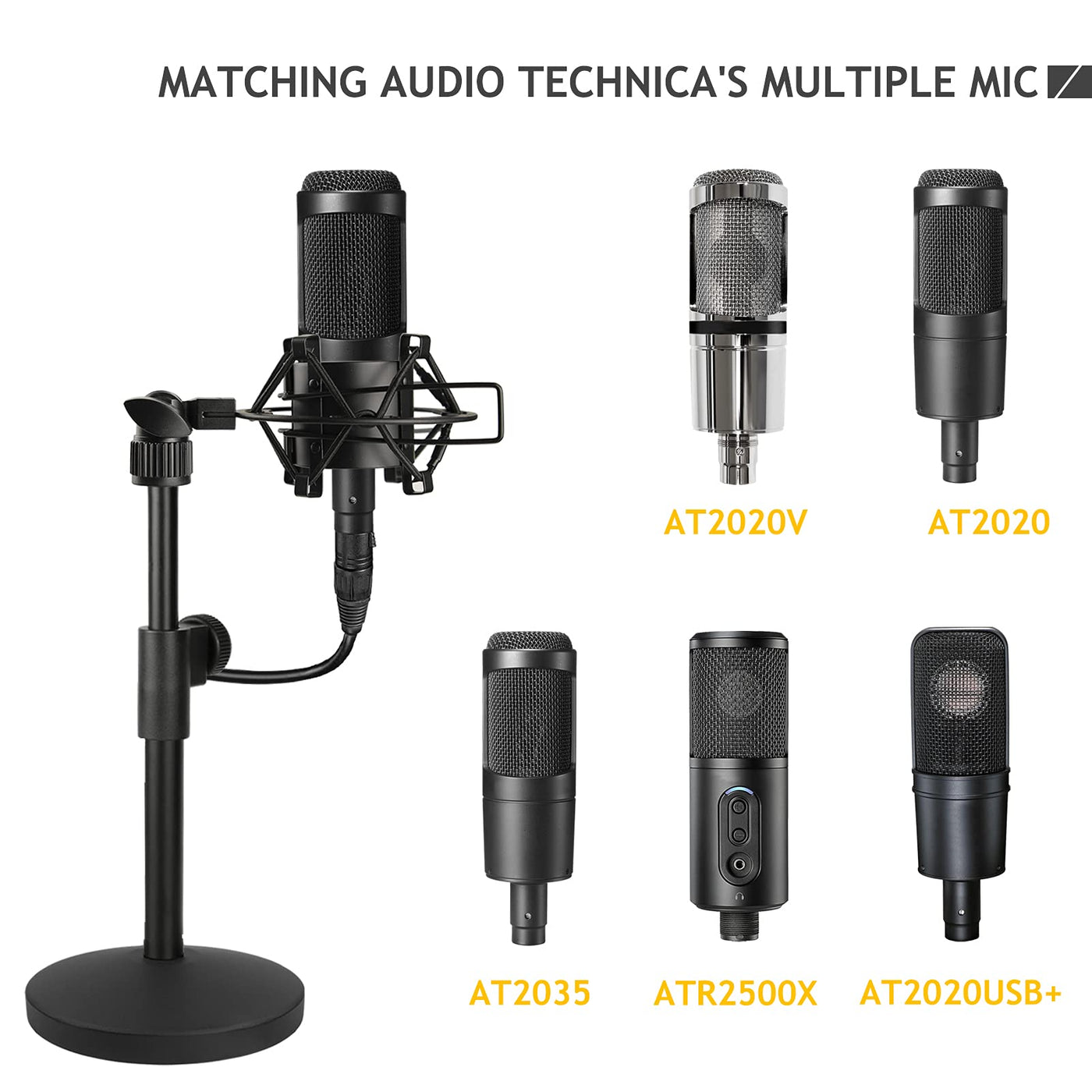 Adjustable Desktop Microphone Stand. Are You Looking For The Right Desktop Microphone Stand To Use? Our Desktop Microphone Stand Is A Best Choice For You Which Is Specially Designed For Audio Technica At2020, At2020Usb, At2020Usb+, At2035 Condenser Studio Microphone. It'S Height-Adjustable Between 8.3 To 11.6 Inch, Giving You A Lot Of Control About The Height. Our Desktop Mic Stand Is Made Of A Solid Construction And Features A Weighted 4.6� Diameter Base, Which Makes It A Great Mic Stand For Desktop Or Stage Use. It�S Ideal For Home Recording, Podcasts, Broadcasts, And Live Interviews, As Well As For Live Sound Reinforcement For Pianos. The Heavy Metal Base Is To Keep Your Mic Secure And Not Easy To Fall Off. Come With A Shock Mount To Reduce Vibration, Isolates The Microphone From Noise, Shock And Vibrations. Like Floor Tapping, Desk Bumping, Adjusting The Boom, Etc. With A 3/8'-5/8' Screw Adapter Built-In The Shockmount. Perfectly Match The Most Of Boom Arm And Microphone Stands.The Shock Mounts Are Framed With An Easy Pinch-To-Open Clamp And A Nice Foam Padding. Base Material: Iron. Base Diameter: 4.6 Inch. Minimum Height: 8.3 Inch. Maximum Height: 11.6 Inch. Package Included: 1*Base. 1*Adjustable-Height Shaft. 1*Microphone Clip. Notice: At2020 Microphone Not Included.