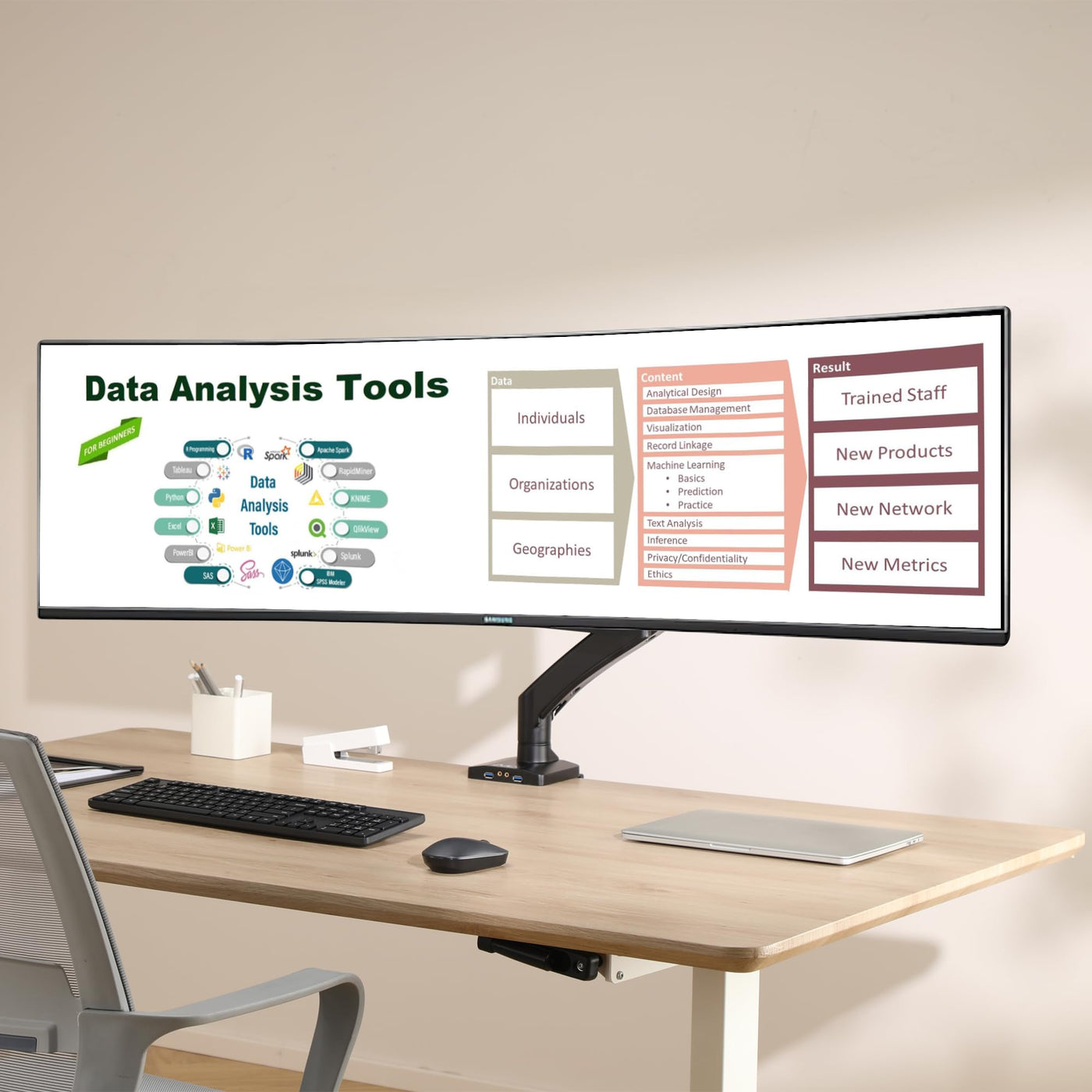 Avlt Single 17'' 49'' Super Ultrawide Monitor Arm For Screens Up To 50 Lbs, Premium Aluminum Desk Stand, Adjustable Pneumatic He