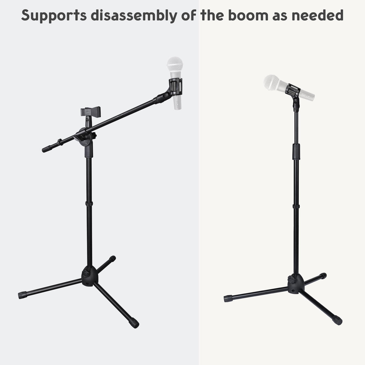 Features:- Adjustable Microphone Tripod Stand - 2 Packs Of Floor-Standing Design Microphone Tripod Stands Include 4 Mic Clips, 2 Phone Holders And 4 Mic Sponge Covers For Stage Performance, Height Can Be Easily Adjusted From 31 To 53 With Rotary Knob, Fits For Both Standing And Sitting Positions- 360-Degree Rotatable Boom Arm - Can Be 360-Degree Rotated With Ergonomic Knob, Able To Adjust The Angle Just The Way You Like It- Microphone Clips & Phone Holder - 2 Kinds Of Mic Clips Include One For Your Instrument And One For Your Voice To Perform, Create A More Professional Musical Experience; Adjustable Phone Holder Is Suitable For Phones With Width From 4 7/16 To 7 5/16- Foldable & Stable Design - Can Be Folded To A Compact Size Of 28 For Saving Room When Not In Use And For Easy Storage; Metal Tripod Stand With Anti-Slip Feet Makes It Not Easy To Tip Over And Protects Your Floors From Scratching- Wide Application - Perfect For Studio Recording, Band Practice, Music Programs, Speeches, Stage Performances And Live Musicspecifications:- Overall Dimension (Lxh): 27 9/16 X 52 3/4 (70 X 134 Cm)- Folded Size (Lxdia.): 28 3/8 X 3 15/16 (72 X 10 Cm)- Mic Stand Adjustable Height: 31 1/2 To 70 7/8 (80 To 180Cm)- Mic Stand Pillar Adjustable Height: 31 1/2 To 52 3/4 (80 To 134Cm)- Max Diameter Of Round Mic Clip: 1 3/4 (4.5 Cm)- Max Opening Of Flat Mic Clip: 1 3/4 (4.5 Cm)- Phone Holder Width Adjustment: 4 7/16 To 7 5/16 (11.3 To 18.5 Cm)- Material: Metal, Plastic- Total Net Weight: 5.74 Lbs (2.6 Kg)Package Contents:- 2X Microphone Boom Stands- 4X Microphone Clips- 2X Phone Holders- 4X Microphone Sponge Covers