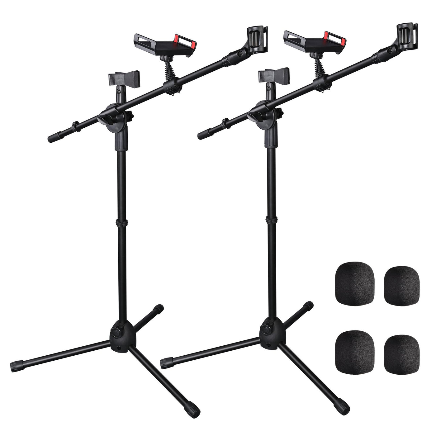 Aw 2 Pack Microphone Boom Arm Stand Adjustable Tripod W/Phone Holder Dual Mic Clip