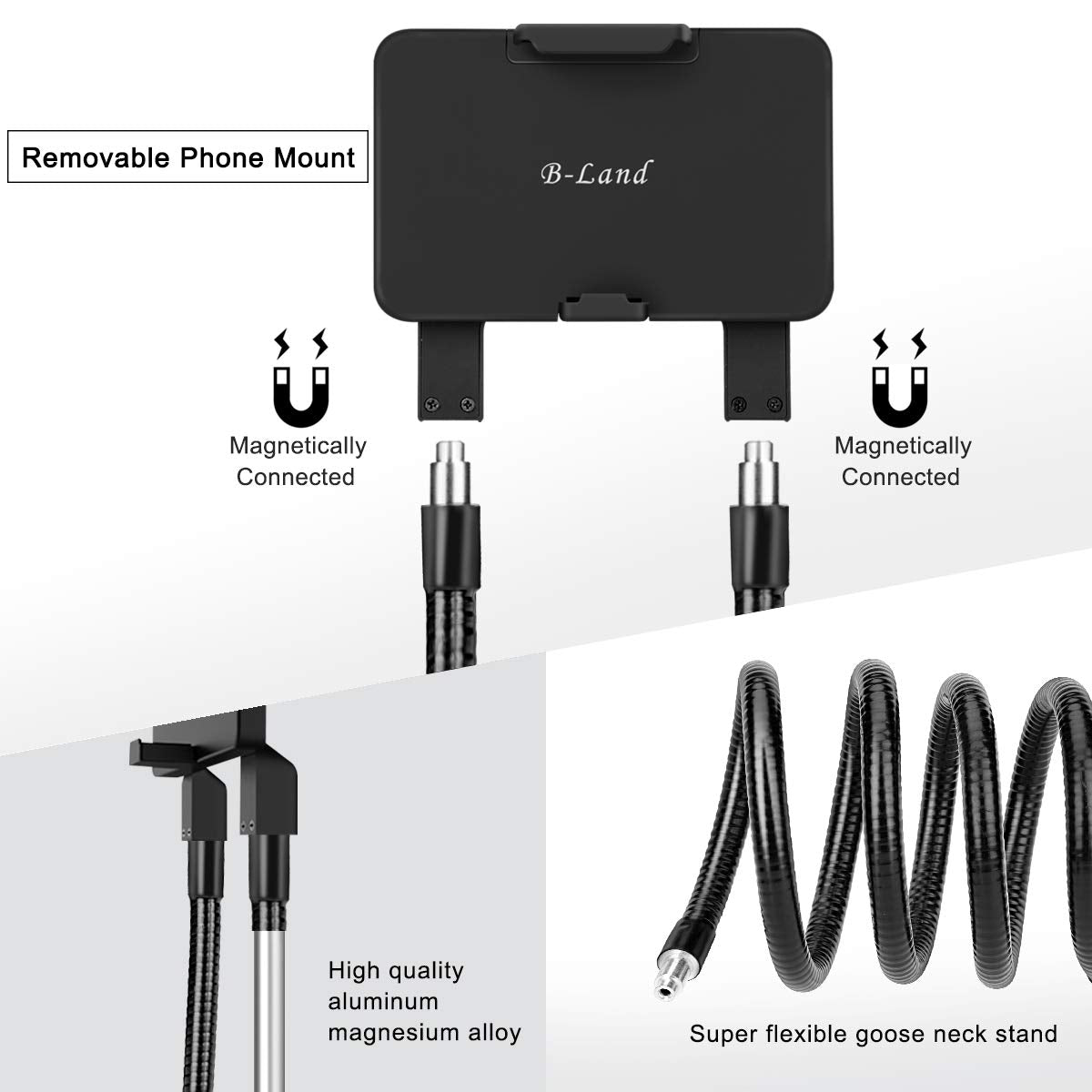 Do You Feel The Same As Me Tired Of Holding My Phone By Hand For Watching Movie, My Hand Feel So Sore Ropping My Phone On My Face When Im Lying On My Bed Which Is Not A Happy Experience The Phone Holder I Got Right Now Is Not Strong Enough For My Heavy Phone, Not Stable And Always Tilt Back See Our New Invention B-Land Cell Phone Holder, Universal Mobile Phone Stand, Lazy Bracket, Diy Flexible Mount Stands With Multiple Function What Makes It Differentthe Gooseneck Arm Was Made Of High Quality Aluminium Magnesium Alloy With Silicone Covered, Super Flexible, Sturdy And Durable Removable Phone Holder, 360 Degree Rotating,Any Angle As You Like Ultifunctional Features, You Can Strap It Around Your Neck, You Can Wrap It Around Your Car Or Bicycle Steering Wheel, You Can Sitting It On The Desk Or Stuck It Under The Mattress, You Can Do Anything With It, Just Get Your Imagination Started Ree Your Hands, No More Sore Of Your Hand Or Your Body Compatible With All Size Of Mobile Phones From 22 Inches (Minimum) To 334 Inches (Maximum) Wide Wireless Remote Control Included For Taking Long Distance Group Photos Or Selfies What You Can Count On We Guarantee A Full Refund Or Exchange For Any Defective Items, And A Friendly 724 Customer Service What You Get In Package B-Land Cell Phone Holder * 1 User Manual * 1 Warm Tips: 1, Please Dont Try To Adjust The Angles Or The Cables With The Phone Clip Attached (Take Off One Side At Least) Because Of Leverage The Connecting Part, Which Consist Of Plastic Will Burst Apart2,Please Press Down The Sliding Piece With Your Phone And Get Your Phone Slips In With Top Piece, It Will Avoid Pulling The Sliding Piece By Hand Powerfully Which Would Lead To The Break Of Phone Holder