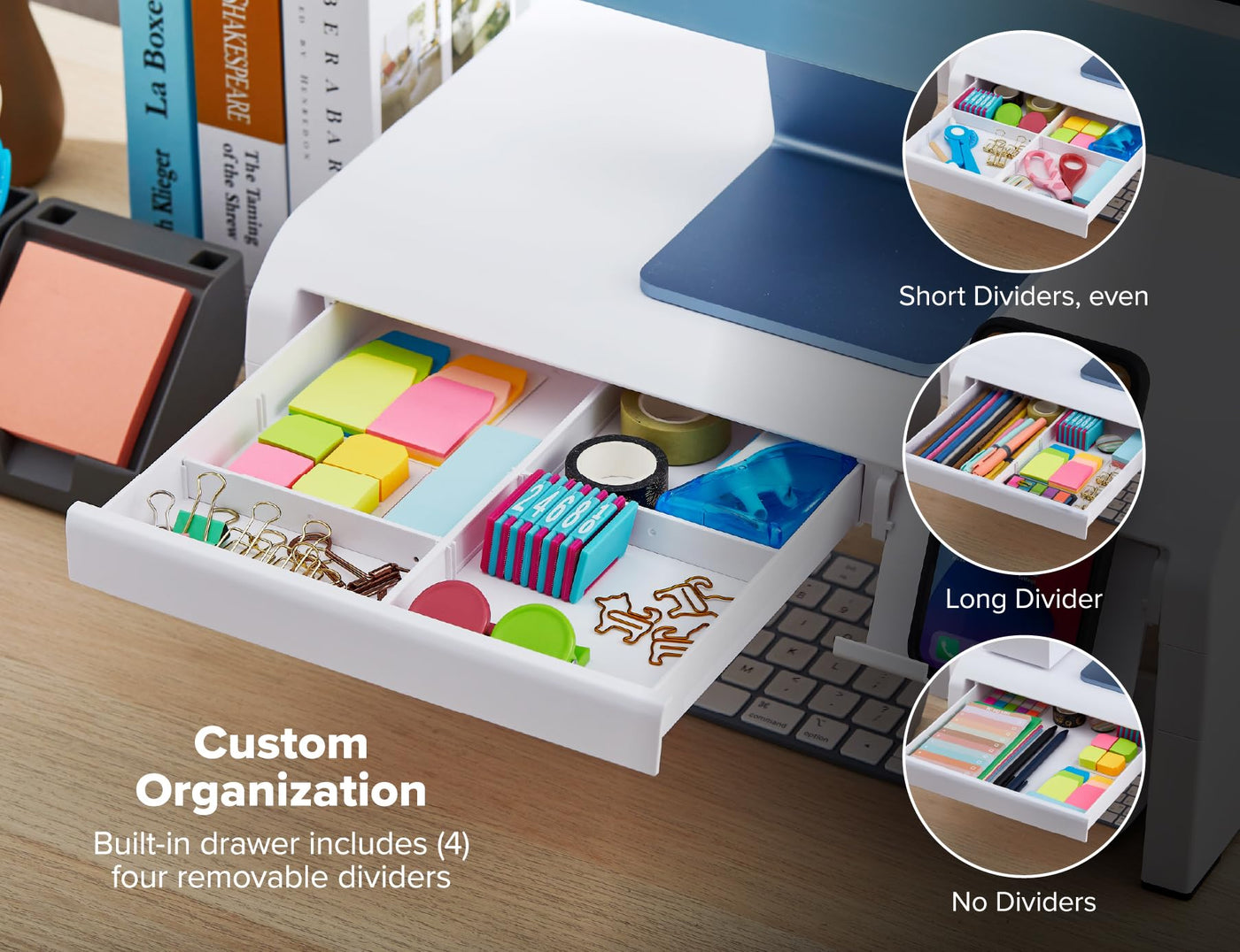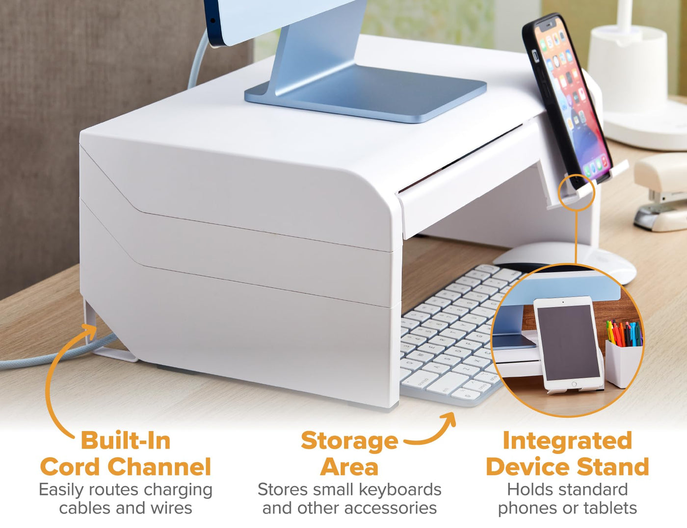 Bostitch Konnect Adjustable Monitor Riser With Drawer & Cell Phone Holder, Laptop Stand For Desk, 4 Height Levels, Cable Managem