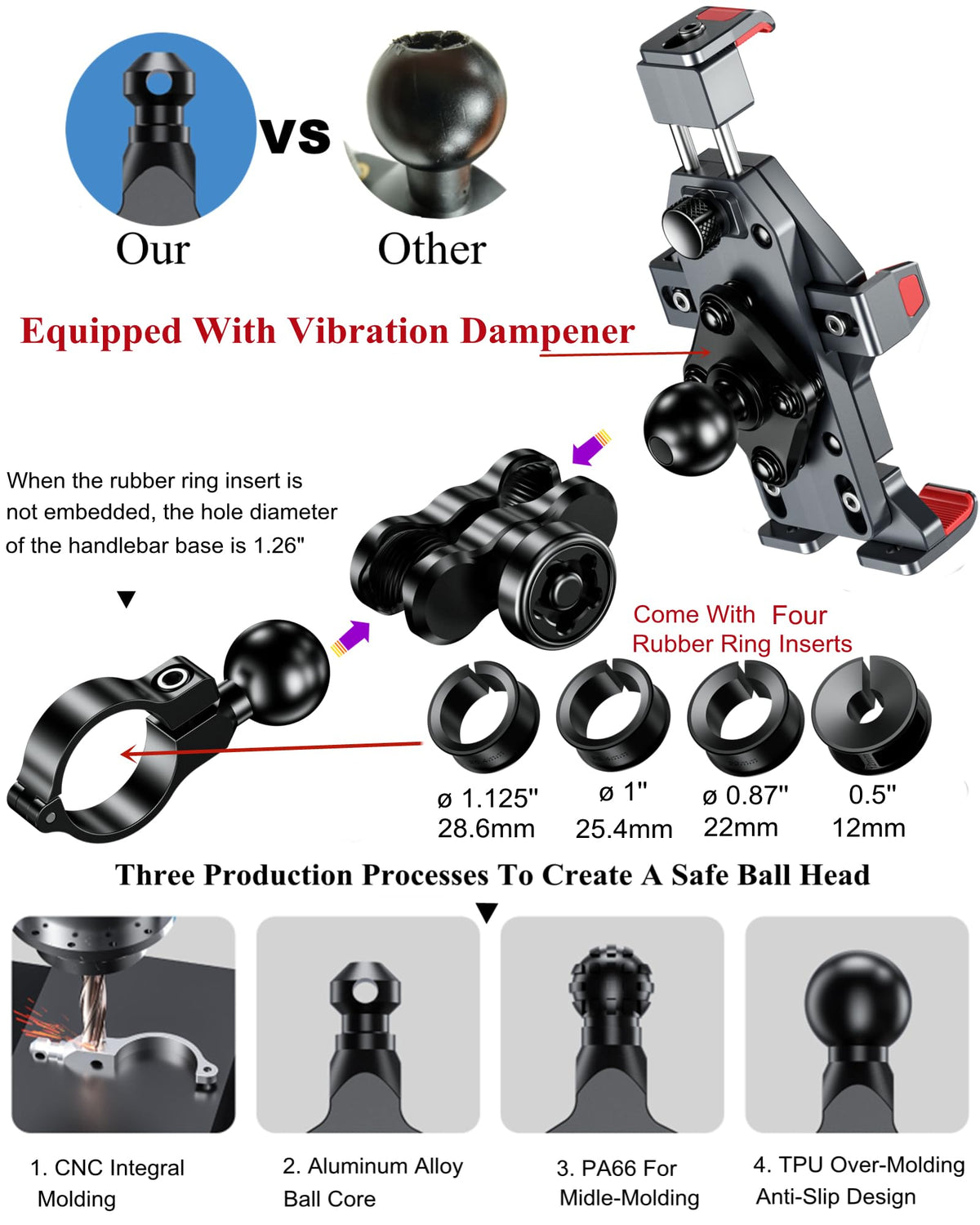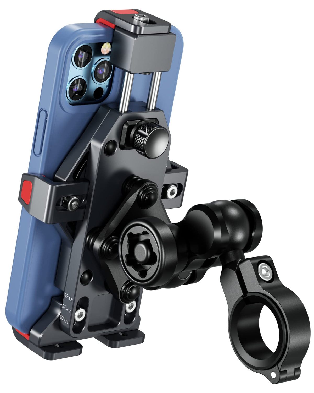 Aluminum Alloy Anti-Theft Motorcycle Phone Mount With Vibration Dampener, Compatible With 4.7'' - 7.2'' Cellphones (Black)