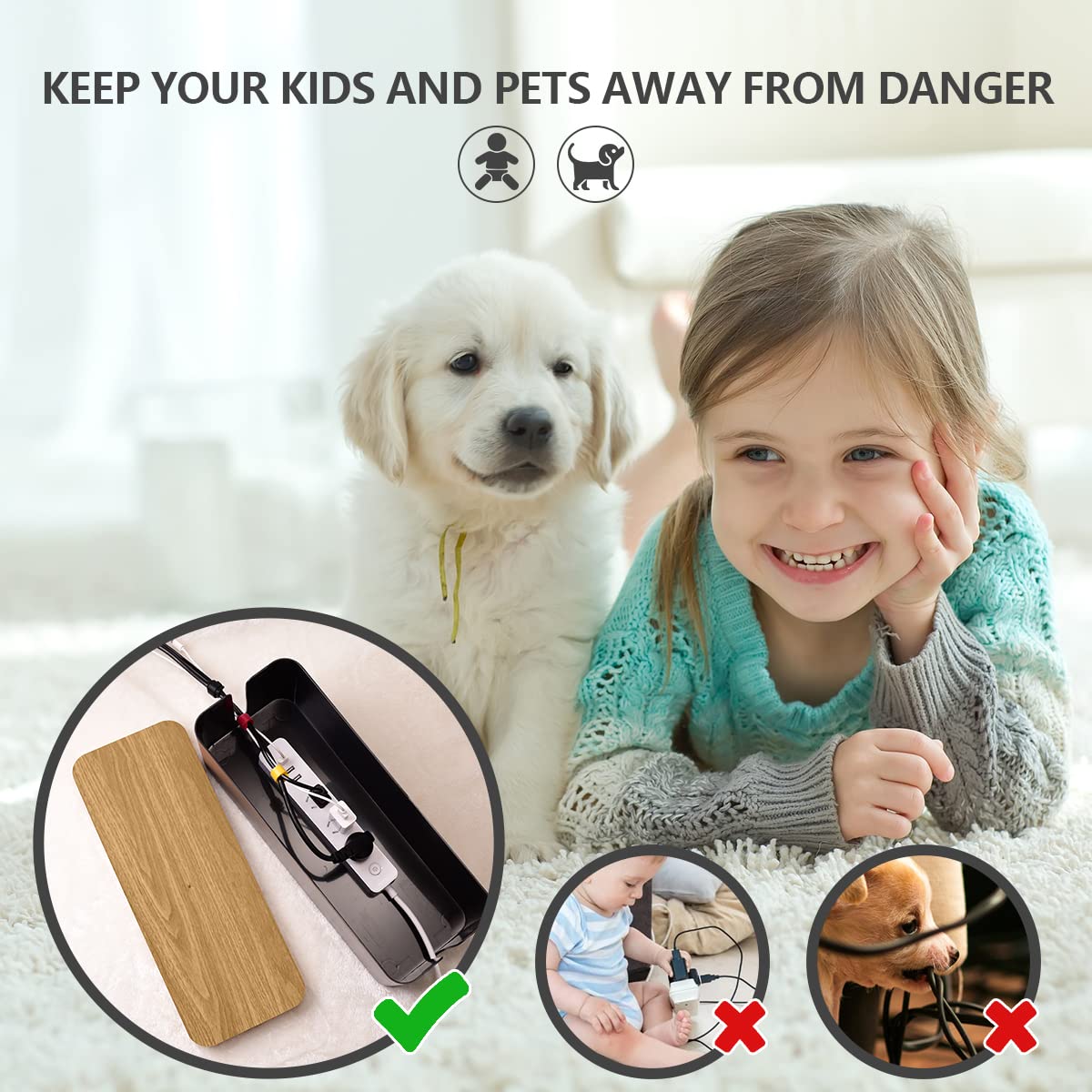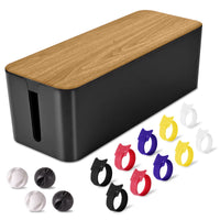Cable Management Box Large Wooden Grain Cable Organizer Box To Hide Wires&Power Strips,Tv&Desk Computer Wires,With Cable Clips