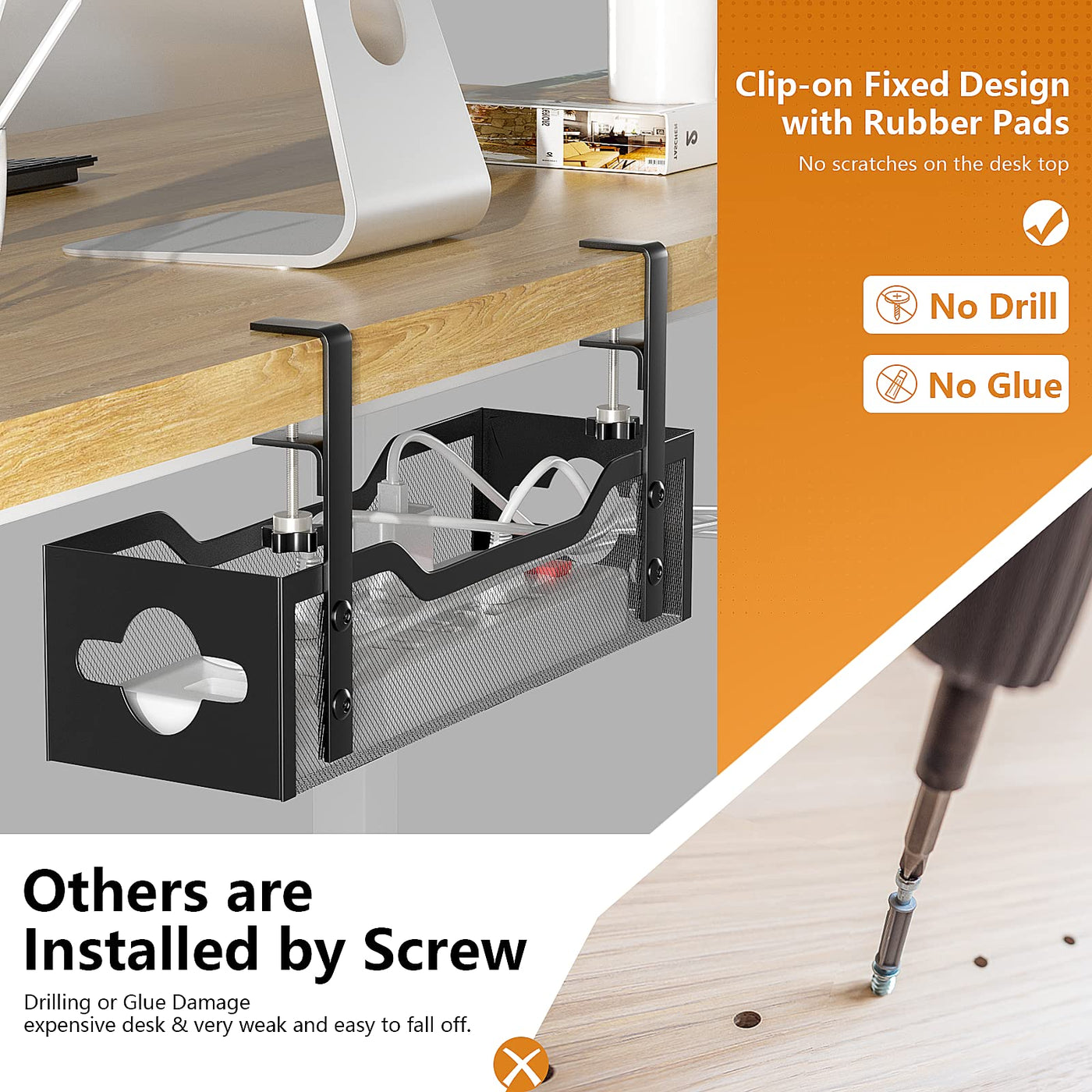 NO DRILLING REQUIRED: The Quszmd cable management rack utilizes a clip-on installation method, ensuring easy setup on various surfaces. Please check for any iron wires or partitions under your table to ensure proper installation.