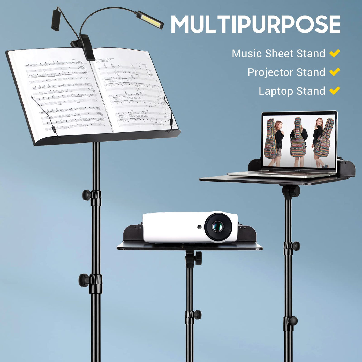 Cahaya 6 In 1 Sheet Music Stand With Stand Light Desktop Book Stand With Carrying Bag, Sheet Music Folder & Clip Metal Portable