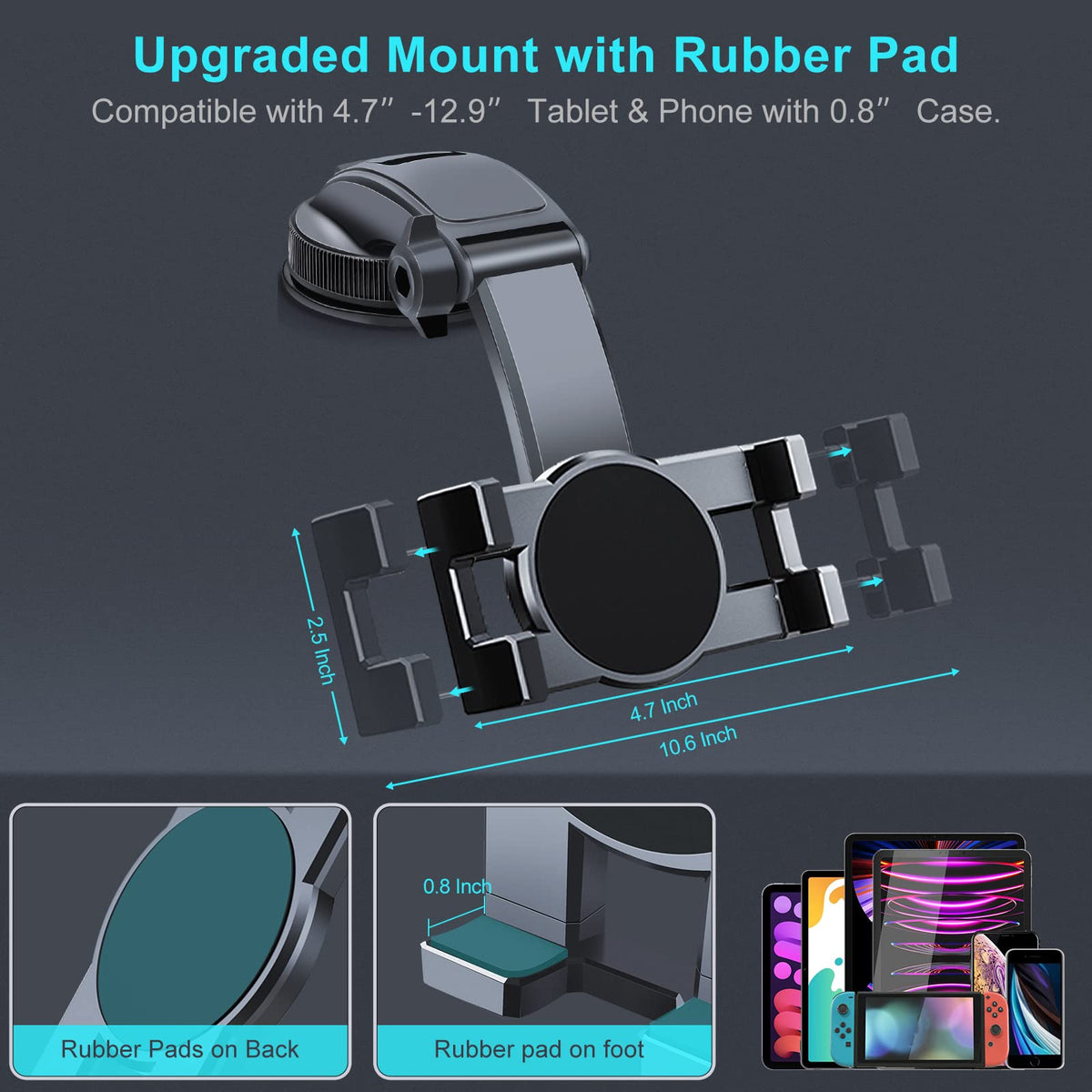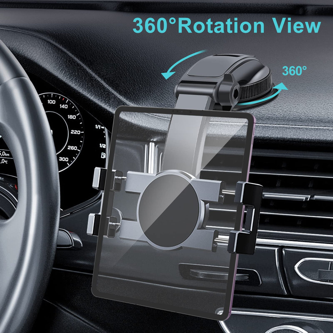 Car Dashboard Tablet Mount Holder, 360 Rotatable Suction Cup With Large Clamp Dash Phone Stand For Ipad Pro 12.9/9.7/11/10.5/Air