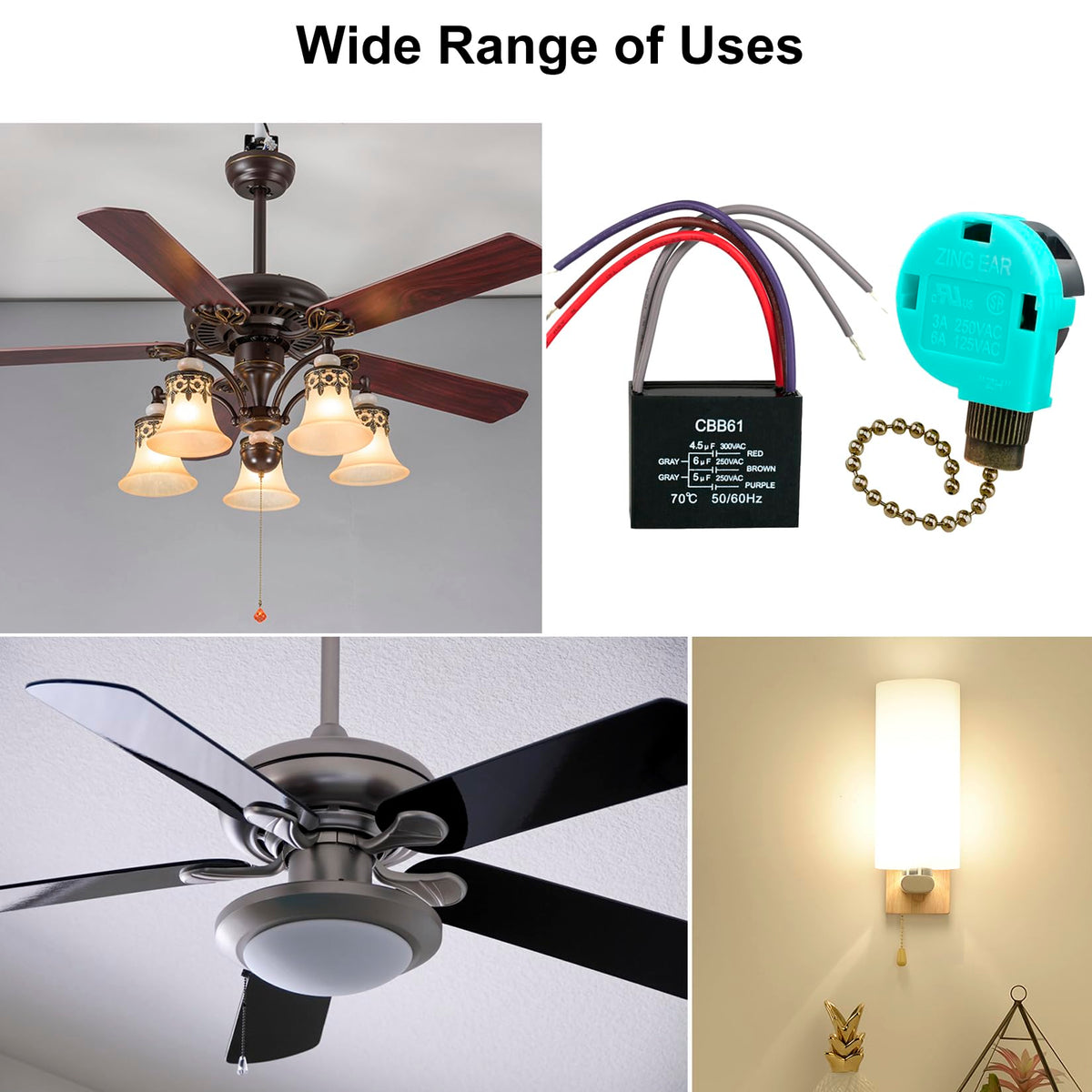 Ceiling Fan Capacitor Cbb61 4.5Uf + 6Uf + 5Uf 5Wire 250V, Ceiling Fan Switch 3 Speed 4 Wire Pull Chain Switch For Fan, Wall Lamp