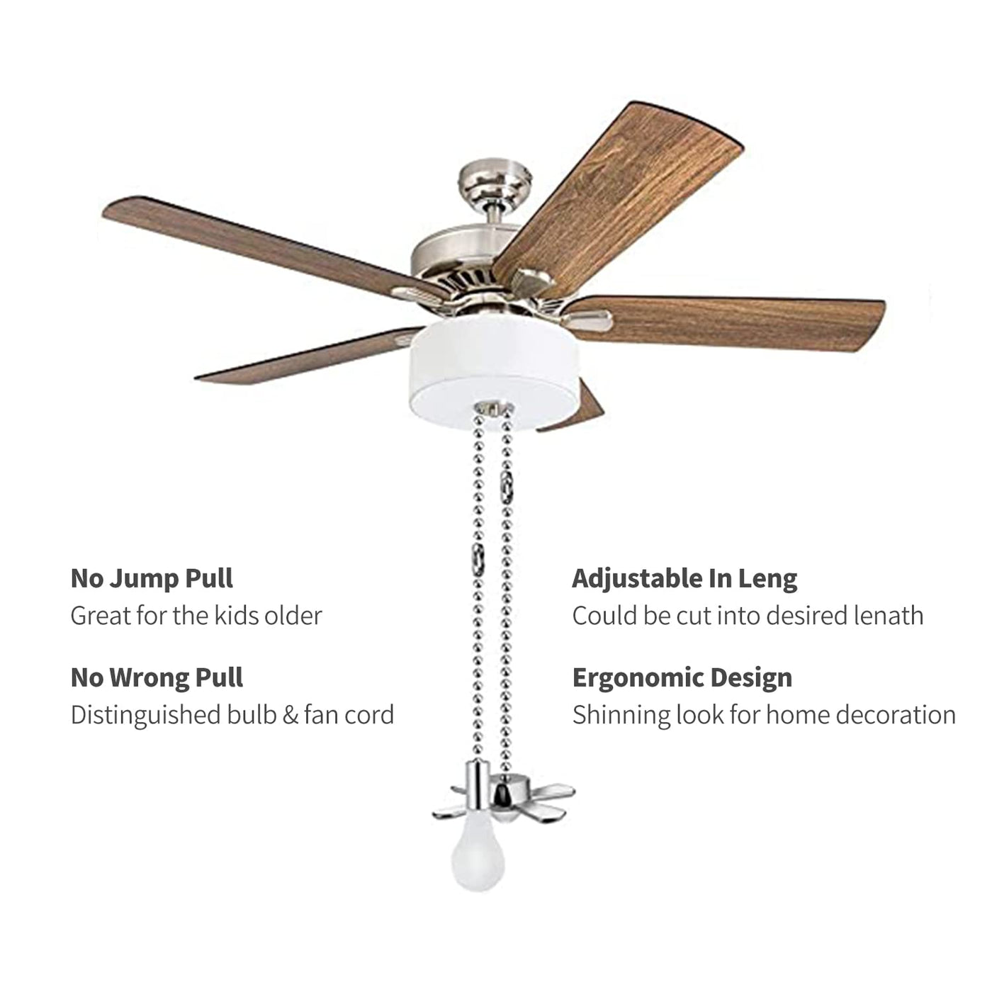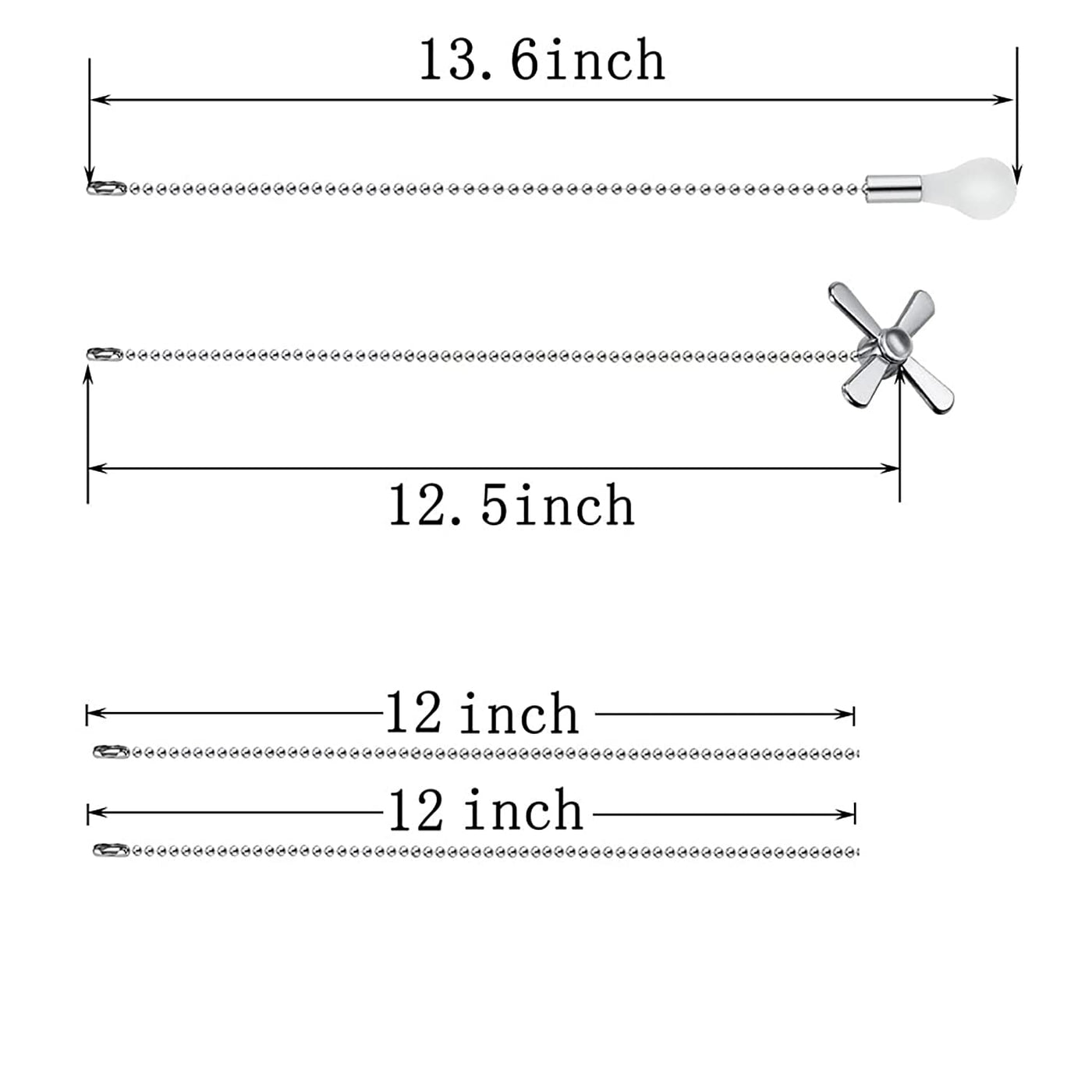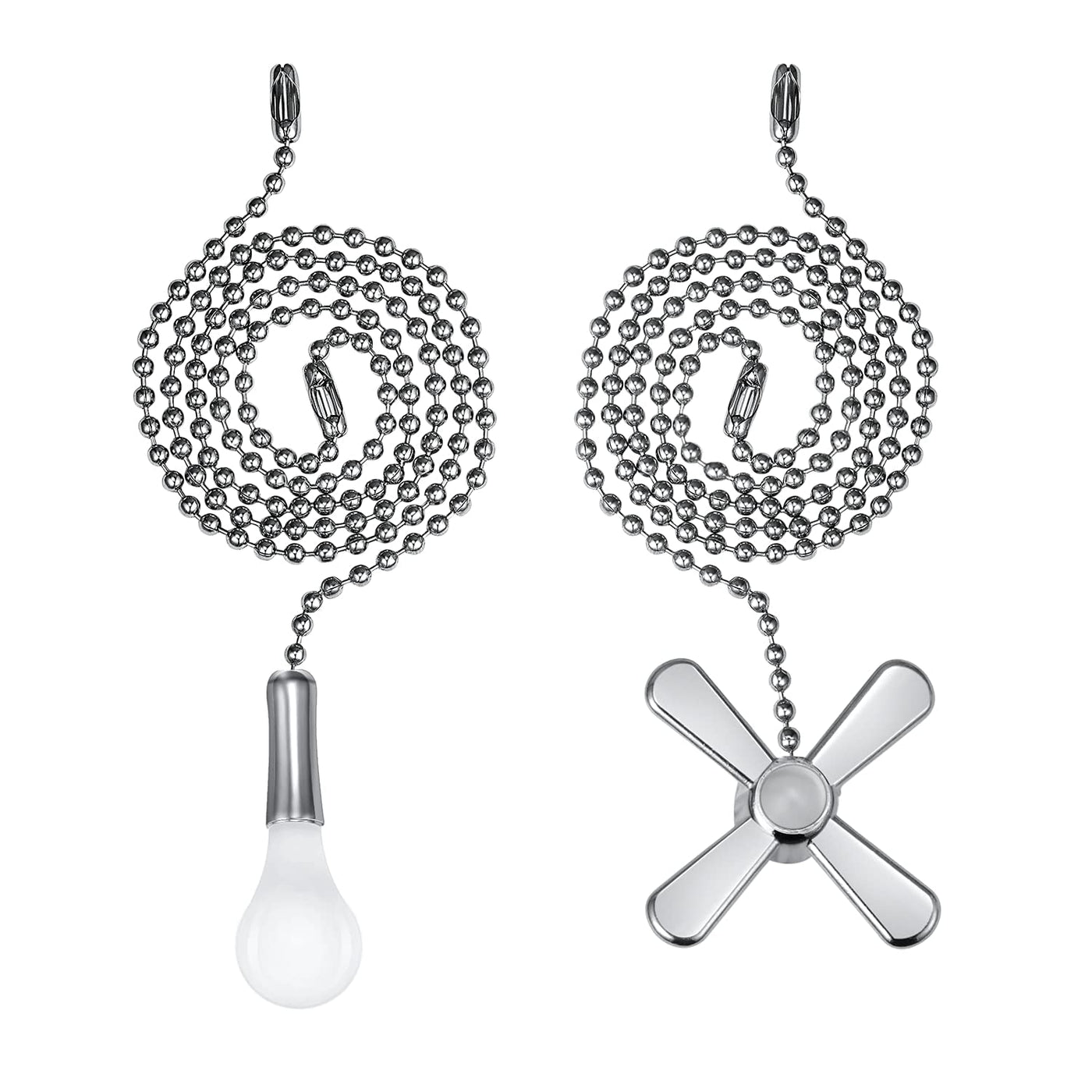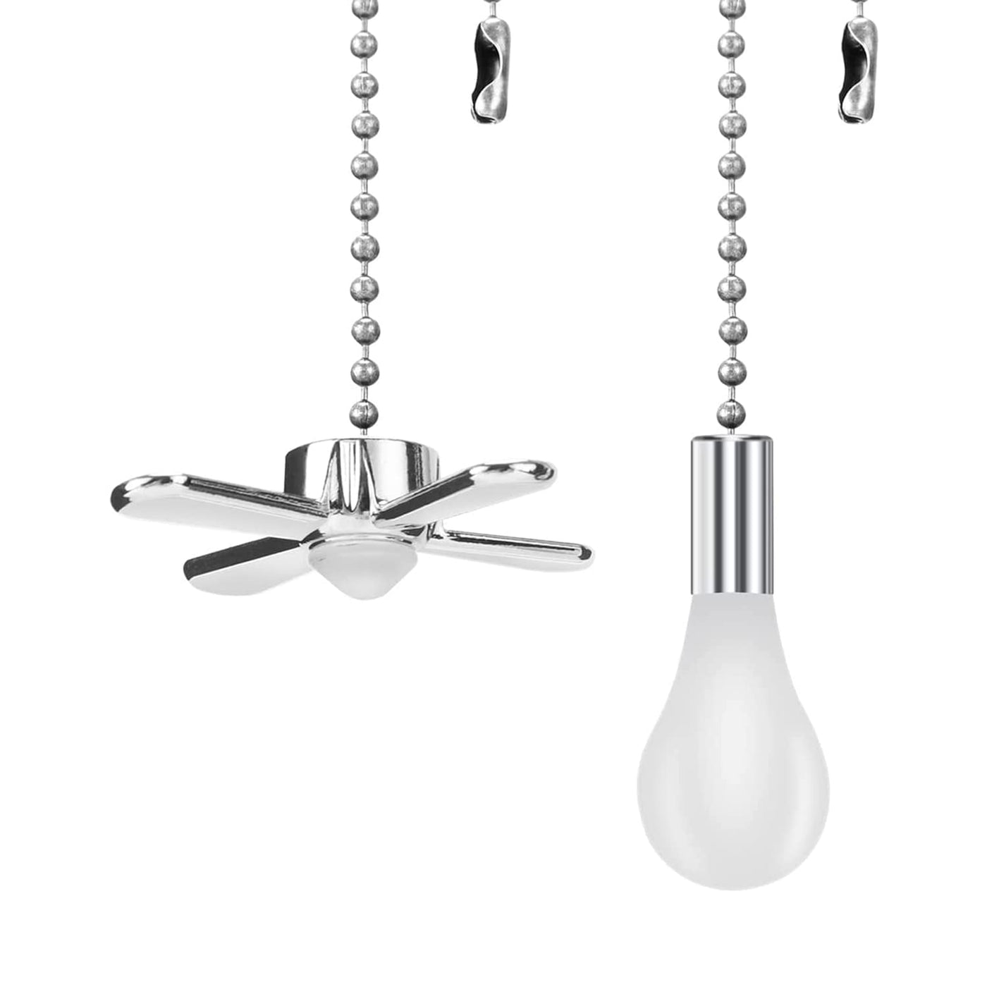 This Ceiling Fan Pull Chain Fan And Light Bulb Set Is The Perfect For Your Ceiling Fan!Round Beaded With Smooth Surface, With No Burrs, Comfortable In Touch.Can Apply To Ceiling Fan Chain, High Ceiling Light Fixtures, On The Ceiling For Ventilation And Other Occasionspackage Includes:1 X 24.5 Inches Fan Shaped Pull Chain Extension 1 X 25.6 Inches Light Bulb Shaped Pull Chain Extensionspecification:Material: Metalcolor: Nickelpull Chain Length: 12Inch Bulb Pendant Size(Approx.): 1.6 Inchfan Pendant Size(Approx.): 0.5 Inch