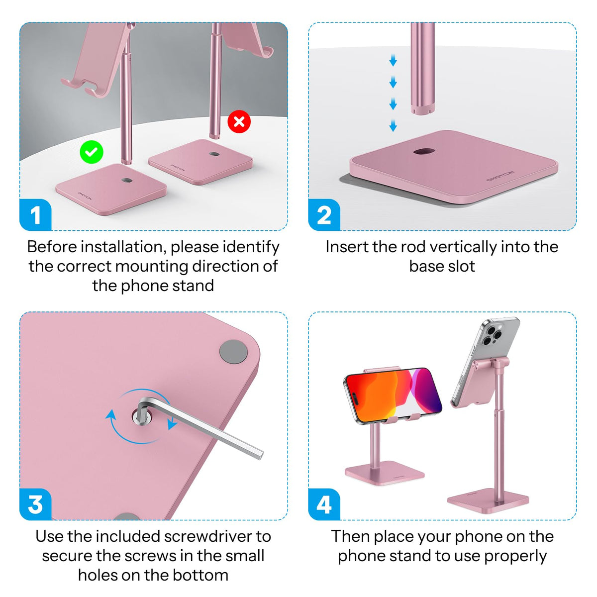 Omoton Angle Height Adjustable Desk Cell Phone Stand For Iphone And Android Phones (3.5 - 7.0-Inch) Adjustable Viewing Angle: The Cellphone Stand Can Be Adjusted To Your Desired Angle (Up To 45 Degree) When Reading A Book, Following A Recipe, Recording A Video, Or Streaming A Movie. Sturdy Construction: The Phone Holder For Desk Boasts A Heavy-Duty Base And Aluminum Rod For Great Stability. Anti-Slip & Anti-Scratch: Featuring Fully Covered Anti-Slip Silicone Pad, This Phone Holder For Desk Can Provide Maximum Protection For Your Devices From Any Slide And Scratches Reserved Charging Hole: There Is A Reserved Charging Hole On The Lower Part For Convenient Charging. Heavy Case Compatible: The Hook Is 19 Mm / 0.75 Inch Wide To Hold Your Device Even With A Heavy Case On. Compatible Devices: Iphone Se 2 2020/11/ 11 Pro/ 11 Pro Max/ X /Xs/ Xs Max /Xr 6.1/ 6.5; Iphone 8 / 8 Plus / 7 / 7 Plus / 6S / 6S Plus / 6 / 6 Plus / 5S/ Se; Samsung Galaxy S10E S9 Plus S8, S7, S6, S5, Note 8, Note 5, 4, 3, 2; Google Pixel 3A Xl 2 Xl Nexus 6P, 5X,; Moto G Huawei Honor 8X, Lg G7 6 Stylo 5 4 3 2, Sony And More Devices Between 3.5 To 7.0 Inches
