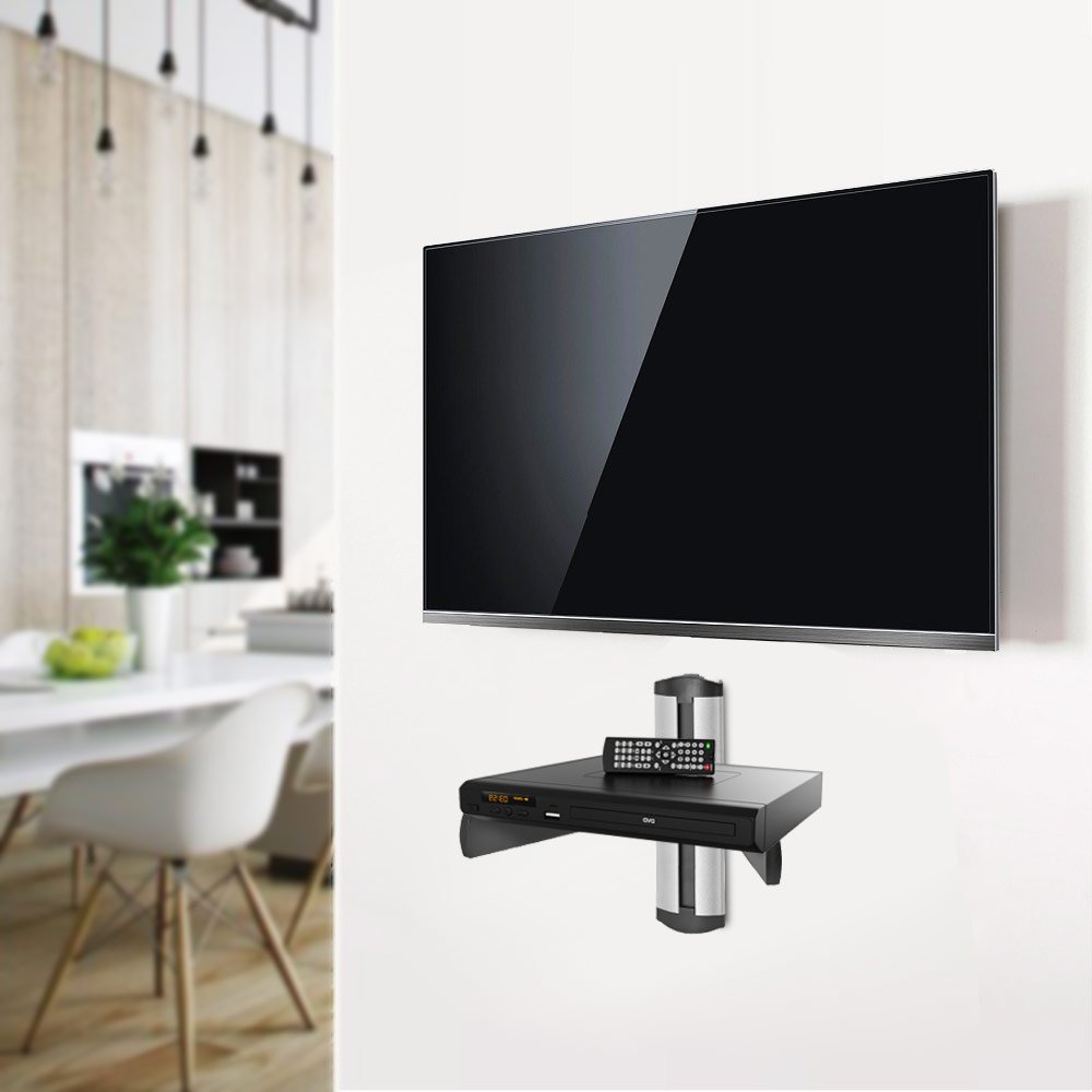 Universal Adjustable Av Support Dvd Wall Mount Shelf (Maximum 11 Pounds) Most Modern Audio-Visual Systems Look That Way - Modern. Their Primary Function Is Not To Be A Design Feature, But They End Up Being Almost As Much Of Your Decor As Your Couches, Tables And Chairs. The Contemporary Appearance Of Todays Flat Screen Televisions And Speakers Lend Themselves To A Specific Classic And Sleek Look: Silver And Black. This Beautiful And Ingenious Unit Will Fit Perfectly Into A Modern Room, With Its Black-And-Silver Aluminum And Steel Construction. The Two-Toned Back Pillar Simply Mounts To The Wall, And Two Adjustable Black Arms Swing Out So You Can Place The Cable Or Satellite Box, Blu-Ray Or Dvd Player, Or Other Av Component Right On Top Of The Arms - Meaning The Arms Will Be Hidden Under The Component Box. Just Select A Spot Close To Your Television Or Audio-Visual Control Unit, Attach The Unit To The Wall In Close Proximity, And Youll Have An Attractive Yet Unobtrusive Shelf To Hold Your Component. The Arms Can Be Adjusted To Fit The Height, Width And Depth Of Your Component, And Theres Even A Cable Management System Which Lets You Run All Of The Necessary Cables Together So They Wont Be Seen Hanging Out From The Dvd Player Or Other Equipment. Key Specifications For The Cmple Universal Adjustable Av Support Dvd Wall Mount Shelf: Suitable For Dvd Players, Set-To-Boxes, And Other Av Components Maximum Component Dimension: 9.25 Inches (Length) X 13.38 Inches (Width) X 10.23 Inches (Height) Back Pillar Size: 10.23 Inches (Height) X 3.34 Inches (Width) Supports Audio/Video Components Up To 11 Pounds (5 Kg) Materials: Aluminum And Steel Installation Instructions Included Cable Management Included Shelf Adjustable For Width, Depth And Height Lifetime Warranty