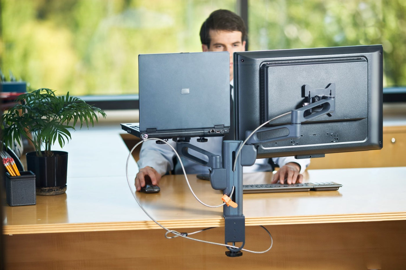 Product Descriptioncomputer Lock, Keyed, Steel Cable Body Material, Length 7 1/2 Ft, Width 1 1/4 In, Height 8 1/2 In, Dia 15/64 In, Dual Head, Cable Steel, Vinyl Finish, T Bar Keyed Locking Body, Protect Equipment From Theft, For Use With Computers, Projectors And Monitorsfrom The Manufacturerdeter Thieves From Stealing Your Notebook And The Personal Information On It. Patented T-Bar Locking Mechanism And Super-Strong Carbon Tempered Steel Cable Provide Maximum Protection That Attaches To The Standard Kensington Security Slot Found In 99% Of Notebooks. Secure, Protect And Lock Down Your Computer And Leave It Safe.