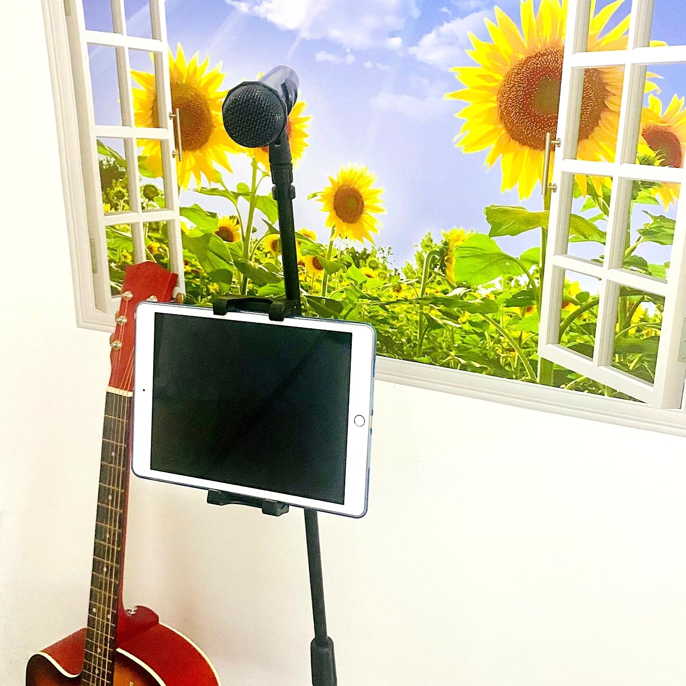 Dhystar Tablet Holder Mount For Exercise Spin Bike,Treadmill,Microphone Mic Stand,Stationary Bicycle Handlebar,Elliptical,Boat,Golf Cart,Stroller,Adjustable Clamp Fits Tablets/Smart Phones,Stable