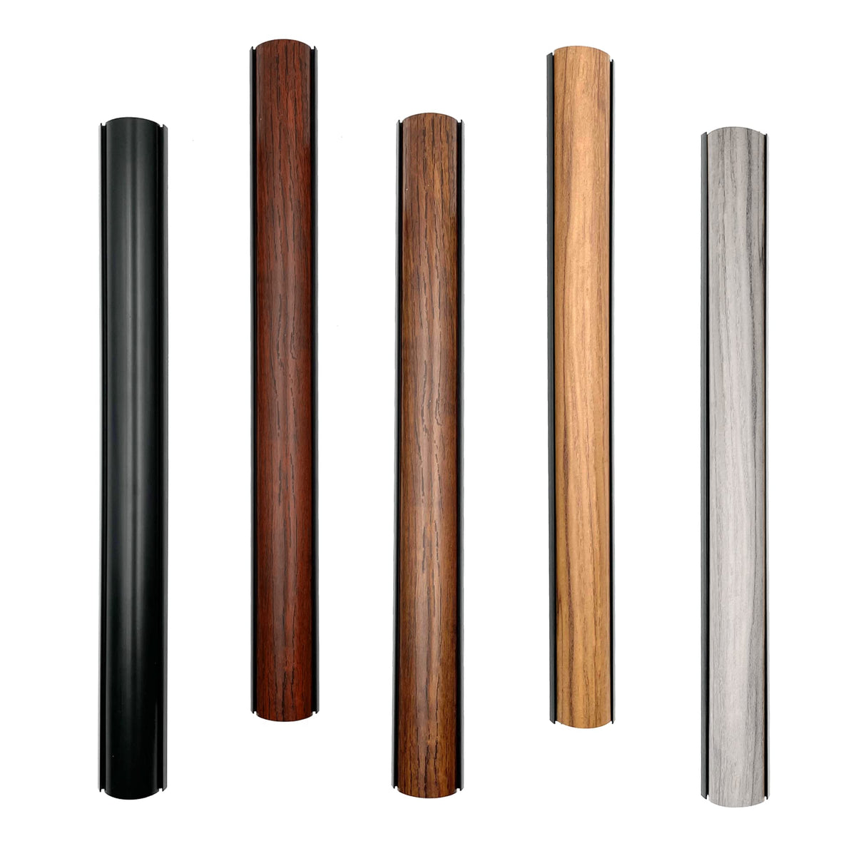 Q: What sizes and colors are available for the Electriduct Cable Shield?A: The Electriduct Premium Cable Shield is available in a small size of 16 inches and comes in a Red Chestnut woodgrain finish, as well as a black option for versatile styling.