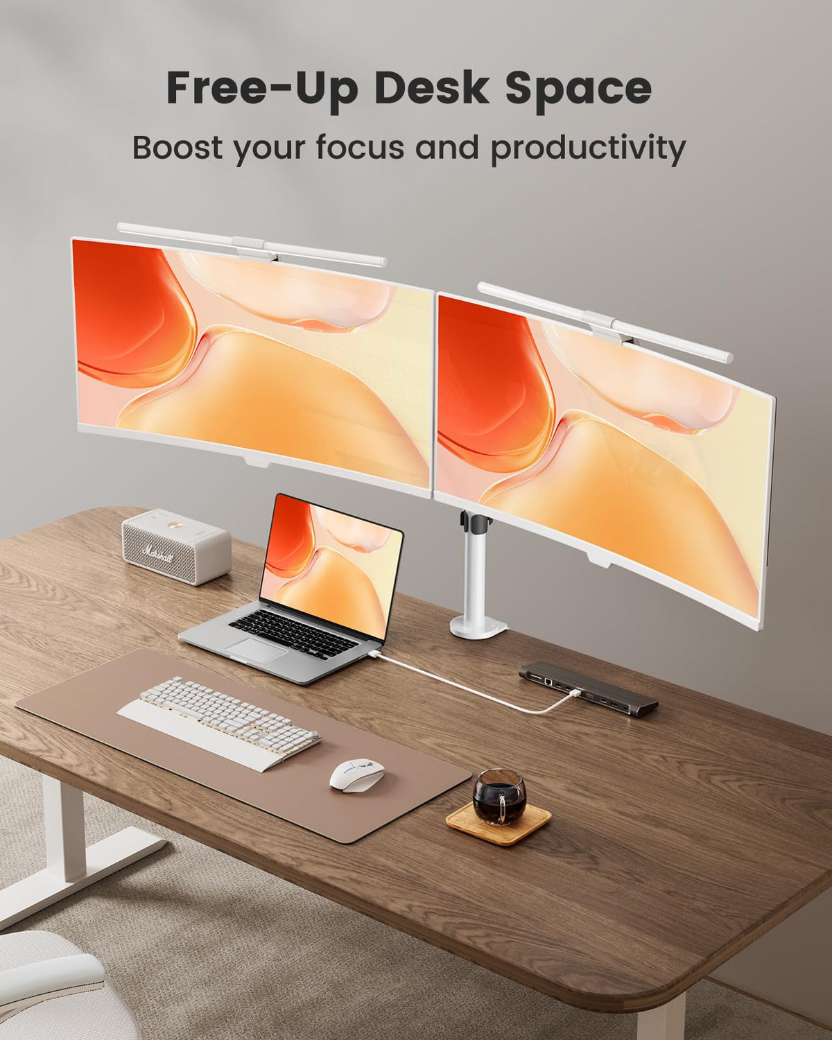 Ergear Dual Monitor Mount For Desk, Fully Adjustable Dual Monitor Arm Fits 2 Computer Screens Up To 32 Inch, White Monitor Arm D