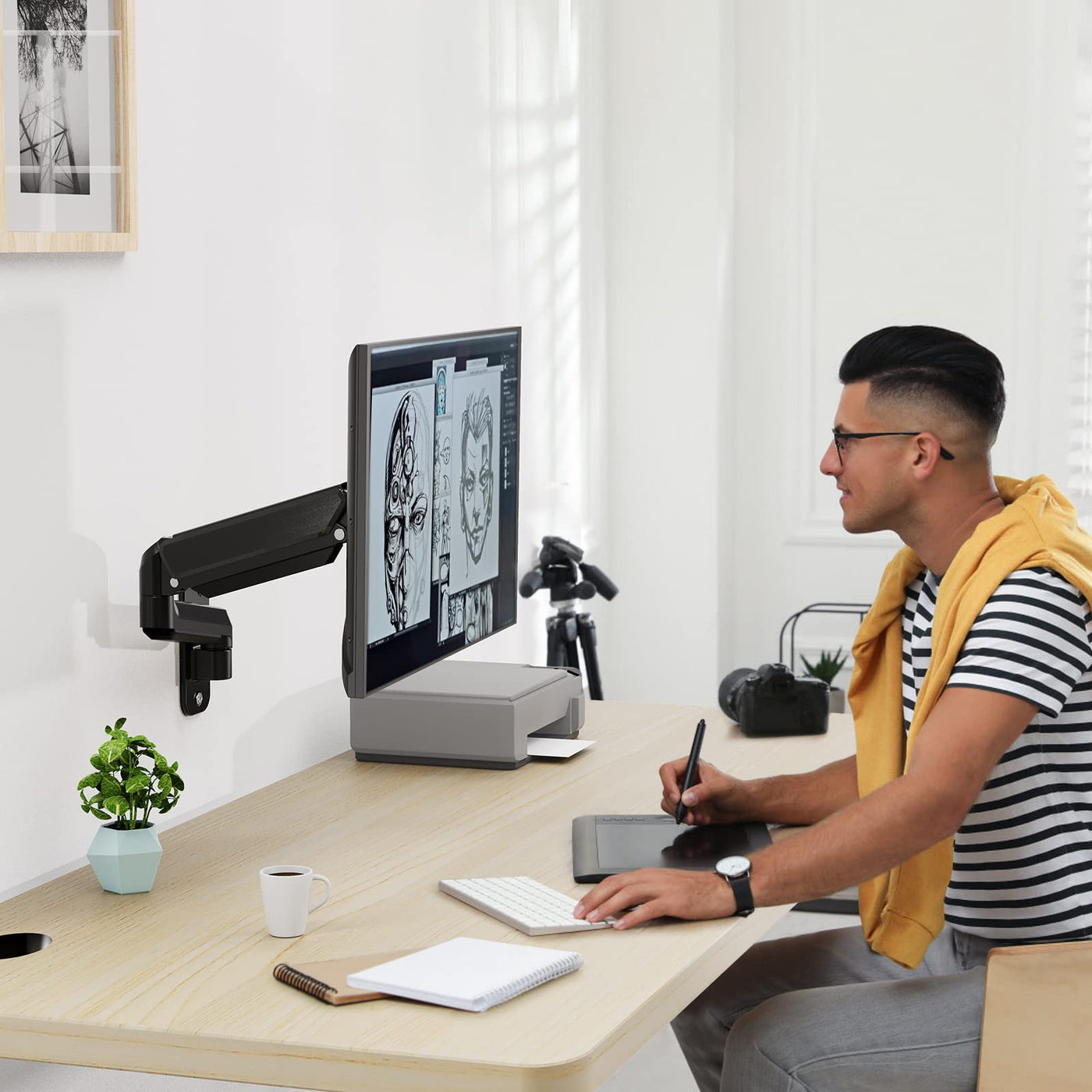 Ergofocus Monitor Wall Mount Fits 17 32 Inch Flat/Curved Computer Screens, Single Monitor Wall Arm Holds Up To 19.8Lbs, Height A