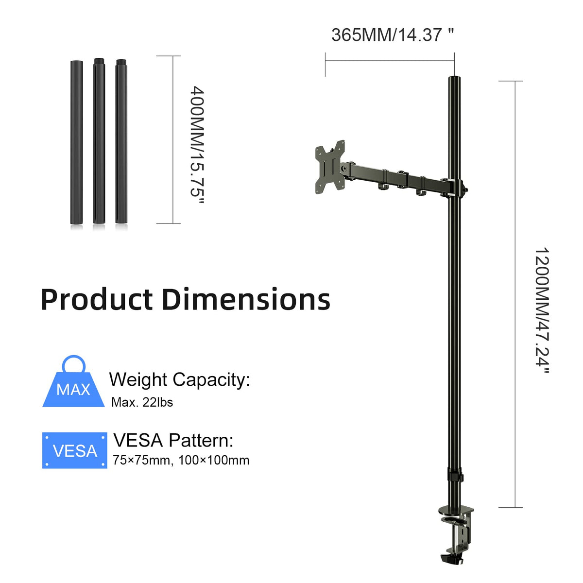 Extra Tall Monitor Mount, Tall Monitor Mount, Tall Monitor Arm, Adjustable Monitor Arm, Vesa Stand For 1 Screen, Up To 47 Inch P