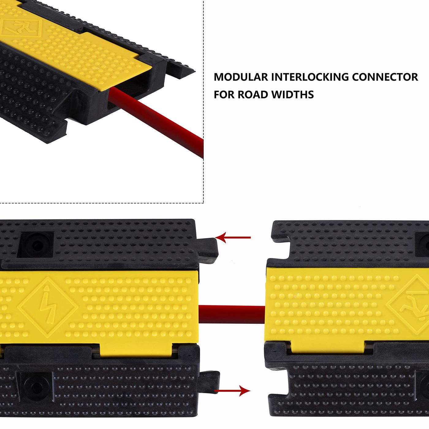 Q: How many modules can be connected together?A: The F COME Rubber Cable Ramp features a modular design with interlocking connectors, allowing multiple ramps to be easily joined together for extended coverage.
