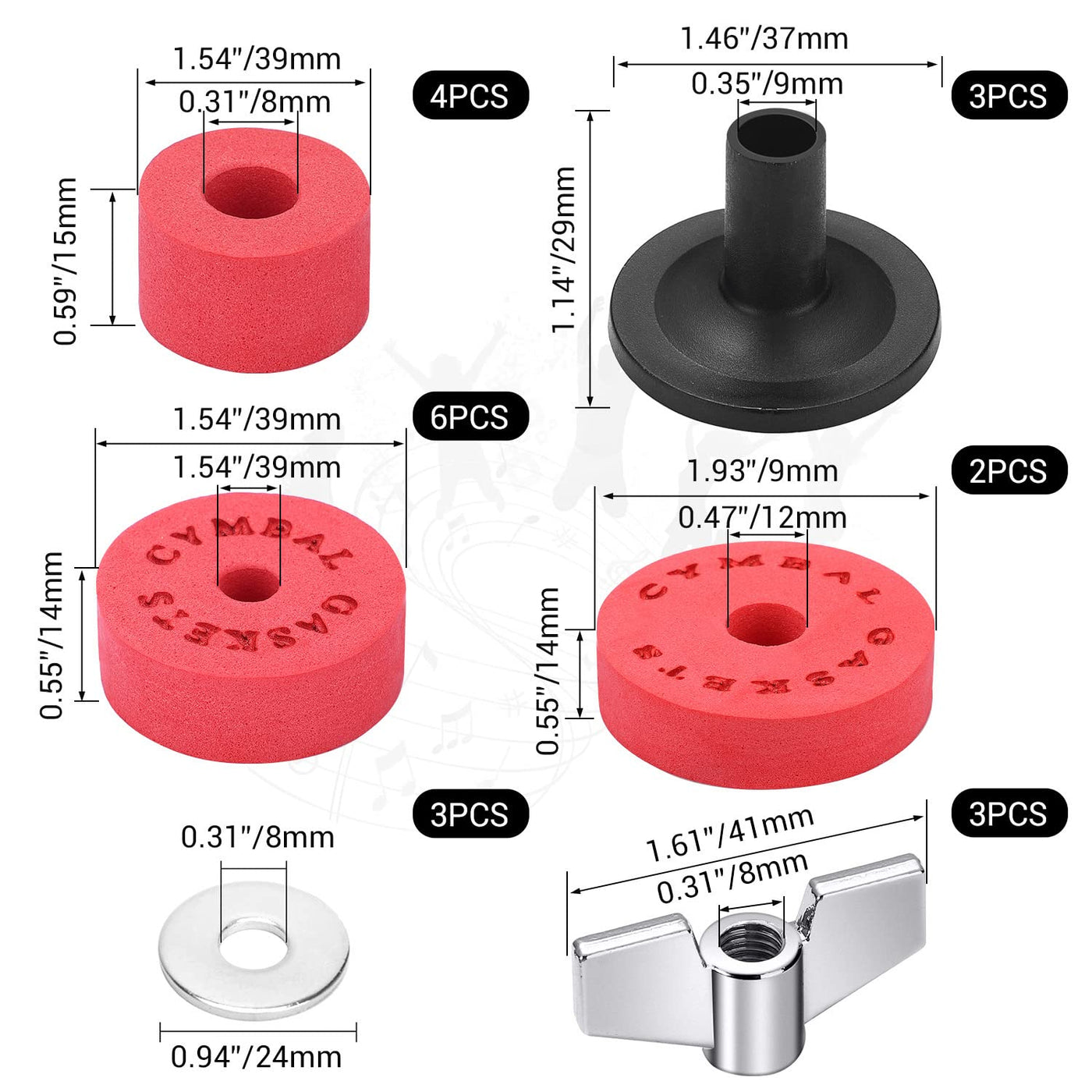 Facmogu 23Pcs Eva Material Cymbal Replacement Accessories, Cymbal Stand Tubes, Drum Cymbal Eva Pads Include Wing Nuts, Washers, Cymbal Sleeves & Drum Key Red