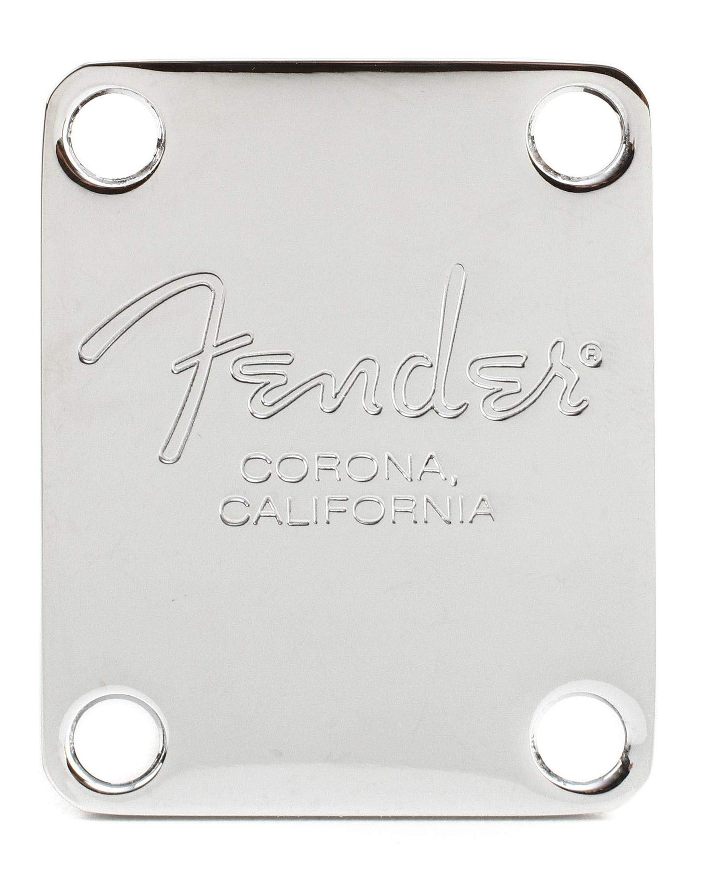Neck Plate Stamped With Fender Corona California, For Use On Most Fender Basses Using Four-Screw Neck Mounting Without Micro-Tilt Adjustment. Mounting Screws Included.