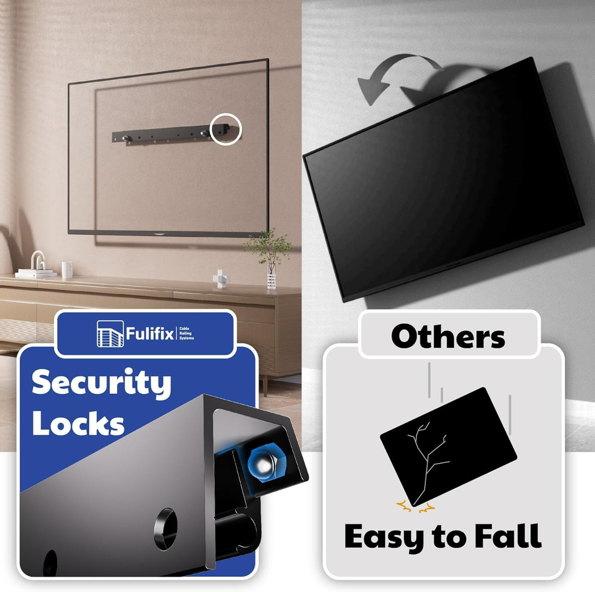 Fulifix 2 Pack Studless Tv Wall Mount For 32 75 Inch Tvs, No Drill Tv Hanger, Easy Setup, Slim Profile, Max Vesa 600X400 Mm, 150