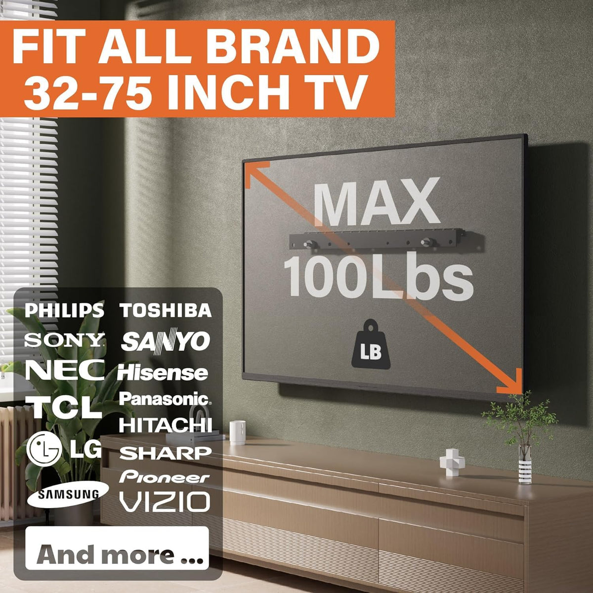 No Stud Tv Wall Mount 2 Pack Drywall Tv Mount Is Designed To Seamlessly Fit All Brands Of Large Tvs With Screen Sizes From 32 To 75 Inches. With Thorough Compatibility, The Tv Bracket Supports A Broad Spectrum Of Vesa Pattern Sizes From 200X100Mm To A Massive 600X400Mm. This Ensures Your Tv Installation Needs Are Met With Precision, Making It An Ideal Choice For Diverse Tv Mounting Demands With An Ingenious No-Stud, No-Drill Design, You Can Easily Mount Your Flat-Screen Tv To Virtually Any Wall Surface. Forget The Hassle Of Drilling Holes Or Searching For Studs. Astonishingly Low-Profile At Just 1 Inch, This Ultra-Slim Wall Mount Snugs Your Tv Tightly Against The Wall, Creating A Seamless And Space-Saving Solution That Completely Transforms Your Room Drywall Tv Hanger Offers A Straightforward Installation Process, Securely Attaching The Tvs To The Wall In No Time. Enjoy Hassle-Free Setup With Included Hardware And Clear Instructions, Ensuring A Seamless Experience For Any Diy Enthusiast. The Disassembly Process Is Equally Effortless, Allowing You To Pack Up And Take It With You To Your Next Destination With Ease Studless Tv Wall Mount X 2 Level Vial X 1 Additional Accessories