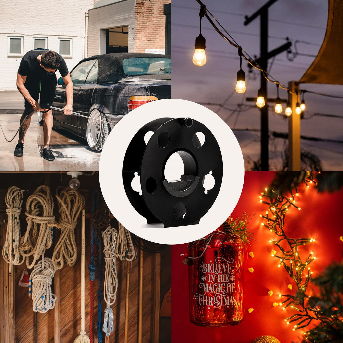Garfatolrv Cord Storage Reel Easy To Use Center Spin Handle With Carrying Bag 125-Feet(Black)[Durable Construction ]: Made Of High-Quality Impact-Resistant Plastic Materials, Lightweight And Durable, And Can Be Exposed To High-Intensity Light.[Wide Application]: It Can Accommodate Up To 125 Feet Of 14/3 Cords, Which Is Very Suitable For Storing Extension Cords, Holiday Lights, Ropes, Hoses And Other Items That Are Difficult To Store.[Convenient And Easy To Use]: Lightweight Design With Handles For Easy Transportation. The Center Handle Can Realize Smooth Winding Movement.[Product Size]: 13.85 X 13.7 X 5.51 Inches.[100% Rise Free Purchase]: Due To The Selection Of Our Products, The Packaging Is Done Manually, If You Receive A Product That Is Not Satisfied, Please Contact Us To Help You Return And Exchange The Product, Hope For Understanding.