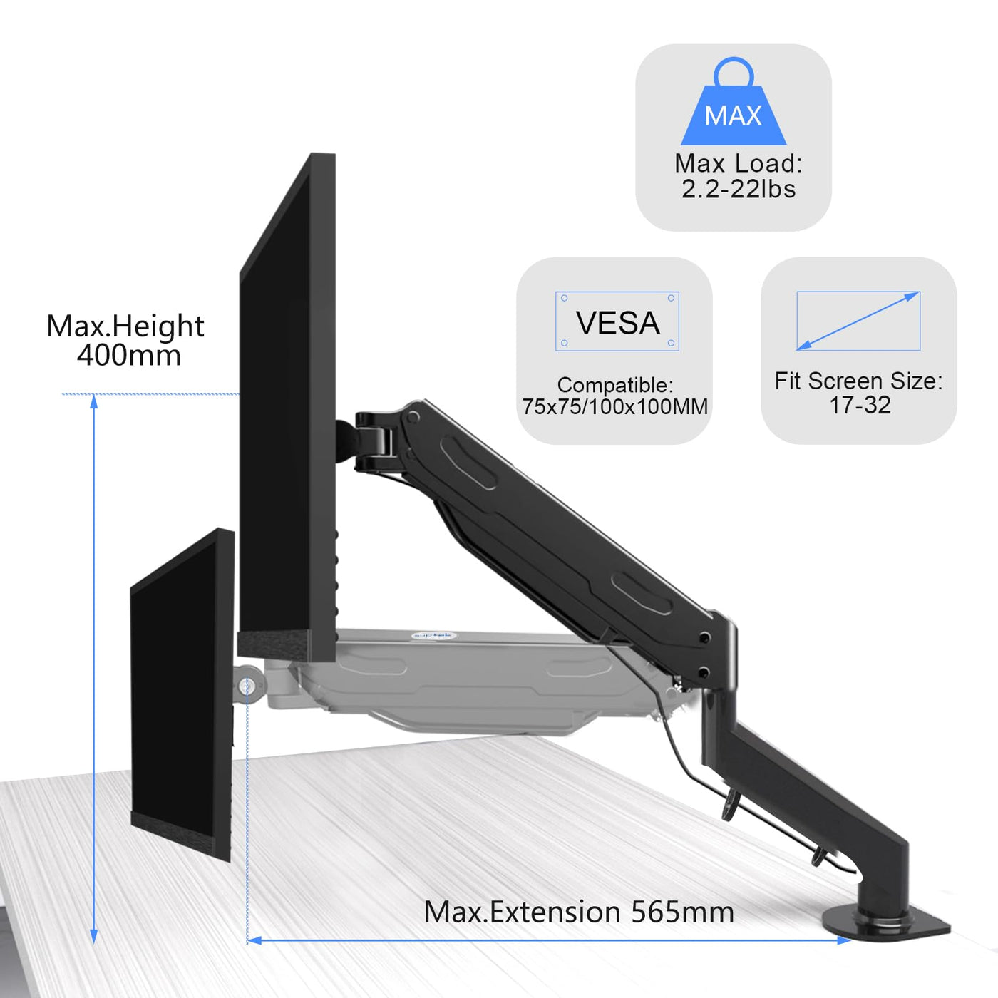 Gas Spring Monitor Arm, Single Monitor Mount, Single Monitor Arm, Single Monitor Desk Mount, Vesa Mount, Computer Monitor Stand,