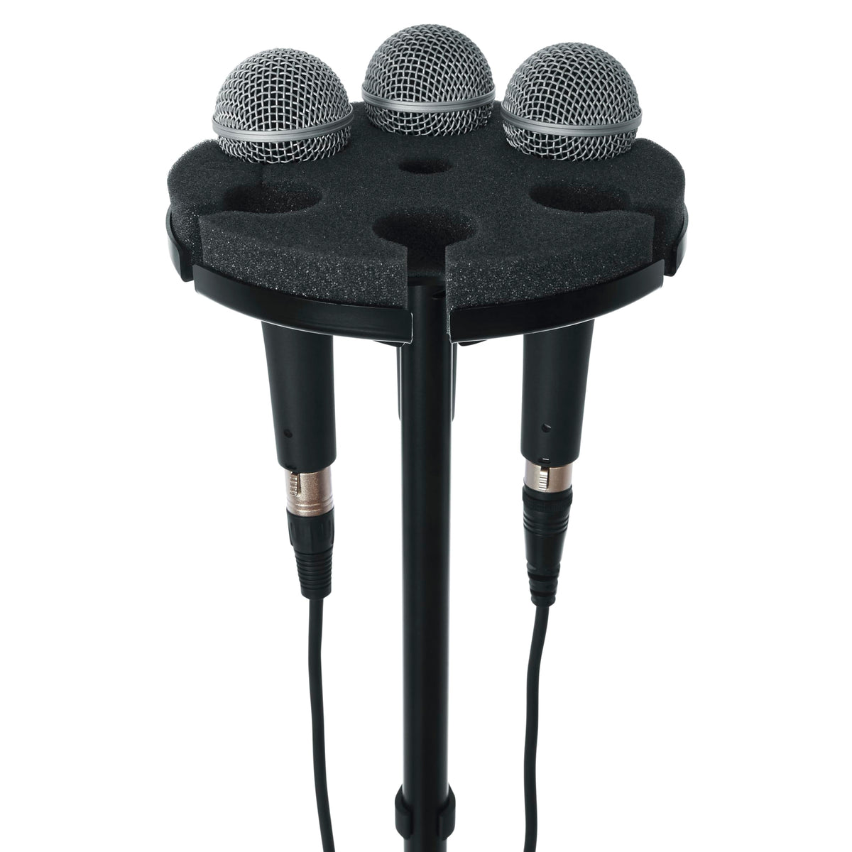 Gator Frameworks Gfw-Mic-6Tray Six Capacity Microphone Tray Quickly And Easily Attaches To Most Standard Microphone Stands. The Steel Base Firmly Holds The Microphones In Place While The Foam Padded Cradle Cushions The Microphones And Minimizes Noise When Placing Or Removing Microphones In The Tray. The Circular Design Of The Gfw-Mic-6Tray Fits Six Microphones Into A Small Space Perfect For Small Clubs To Concert Venues. When You Need To Have Access To Multiple Microphones But Need To Keep Them Organized, Protected And Close At Hand, The Gfw-Mic-6Tray From Gator Frameworks Is Ready To Assist.