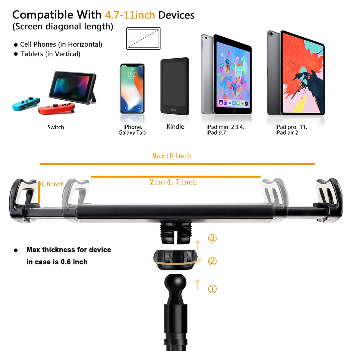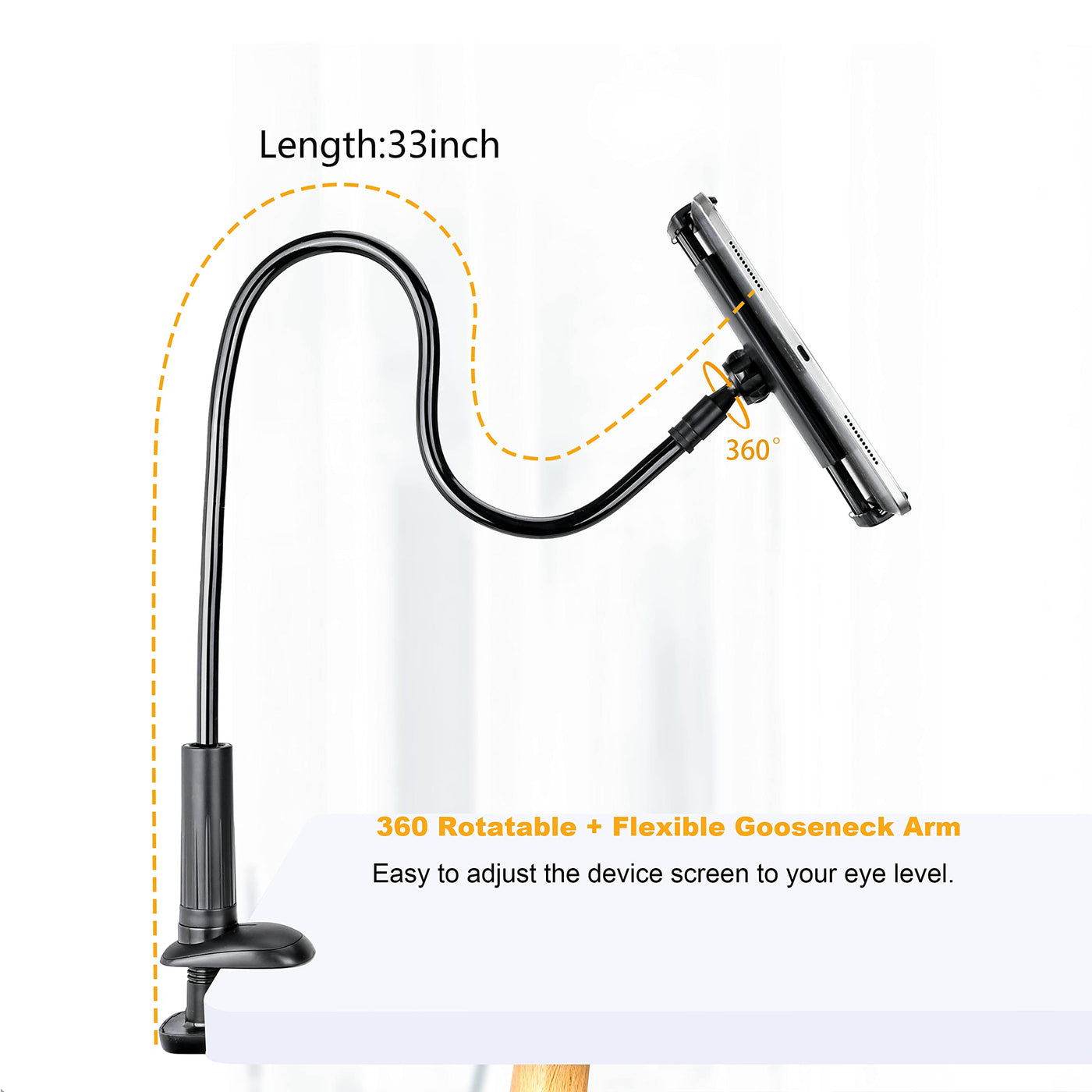 Free Your Hands And Enjoy The Pure Leisure Time With The Universal Cell Phone & Tablet Clamp Holder Stand .It Has Flexible Long Arms Gooseneck Bracket Clamp Mount For Ipad,Iphone,Google Pixel,Samsung,Lg Optimus,Htc,Nokia Lumia,Huawei,Google Nexus,Kindle And Include 4.7-11 Inch Devices,Can Be Clipped Onto Any Desk,Bed Headboard,Chair,Wall Cabinet.Satisfy Your Needs Whatever You Are At Home Or On The Go, Allows You To Enjoy Your Phone Or Tablet Anywhere.