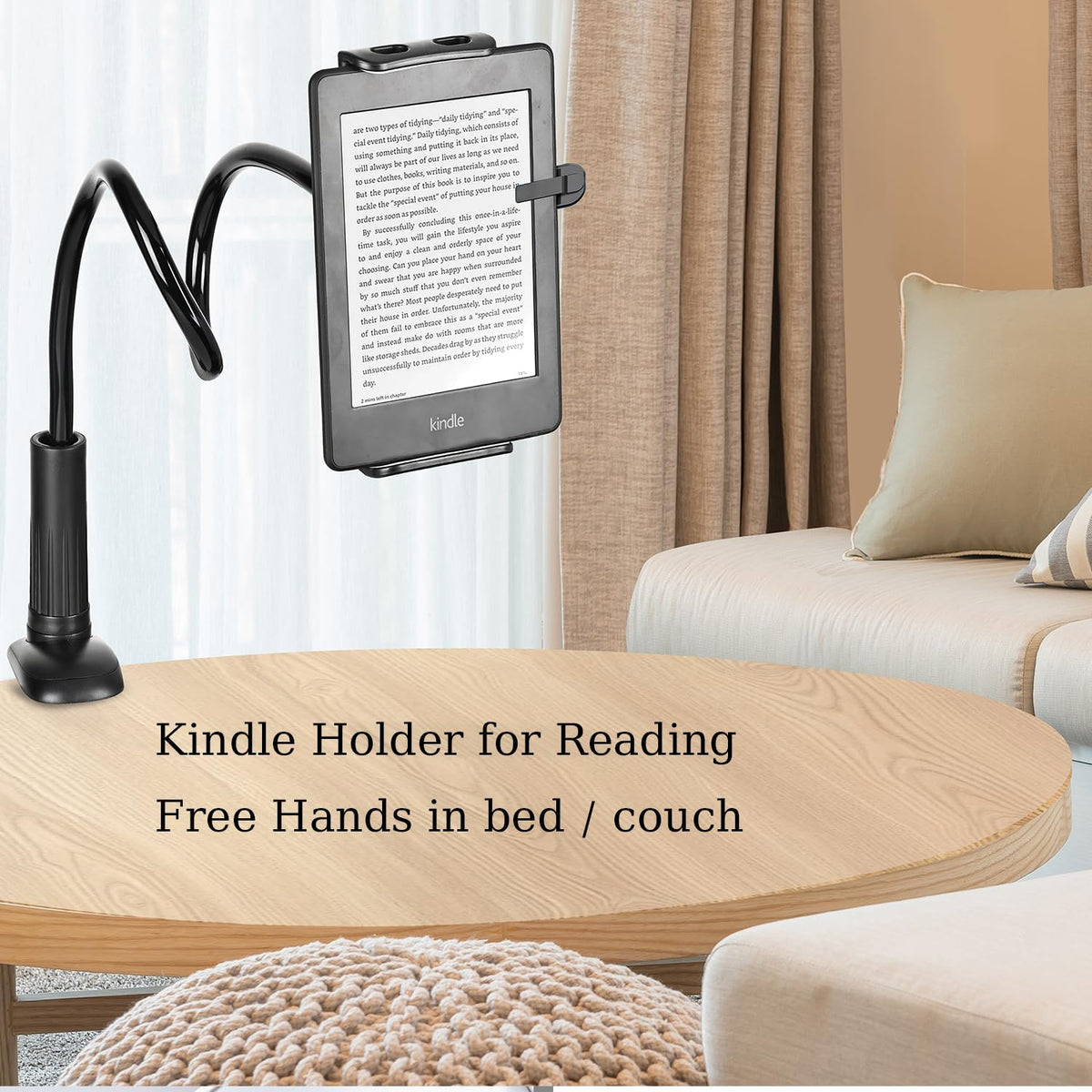 Gooseneck Tablet Stand Kindle Holder For Bed, Tablet Stand With Adjustable Flexible Arm Clamp Mount Clip Holder For Phone Ipad A