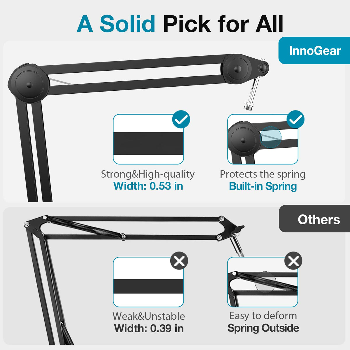 Innogear Boom Arm Microphone Stand, Max Load 4.4 Lbs Desk Mic Arm Stand For Blue Yeti Hyperx Quadcast S Solocast Shure Sm7B At20