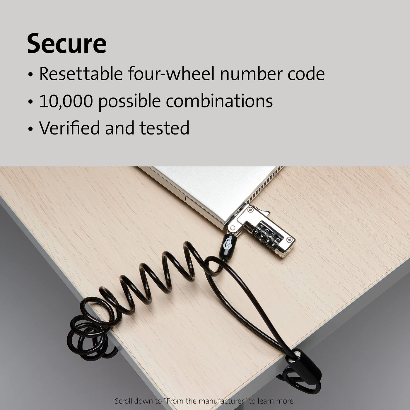 Ideal For Thin Laptops, The Slim Nanosaver Portable Combination Lock Allows The Laptop To Lie Flat And Stable, And Wont Block Valuable Ports. Self-Coiling Carbon Steel Cable Sheathed In Plastic Stretches Up To Six Feet And Shrinks Down To Three Inches, For Easy Portability. Features Include A Resettable Four-Number Combination; One-Handed Operation; And Register & Retrieve For Quick, Secure, And Easy Combination Retrieval. Meets Or Exceeds Rigorous Strength Testing Standards. Five-Year Warranty. From Kensington, Inventor Of The Laptop Cable Lock, And Industry Leader In Physical Device Security For More Than 25 Years.