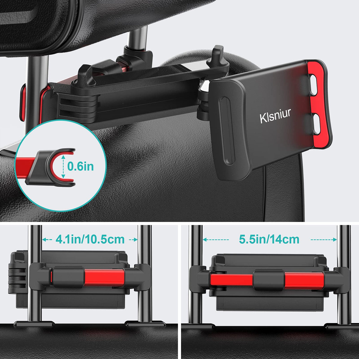 Klsniur Car Headrest Mount/Tablet Headrest Holder - Compatible With 4.5-8Inches Smartphones And 6-10.5Inches Tablets/Switch (Red)