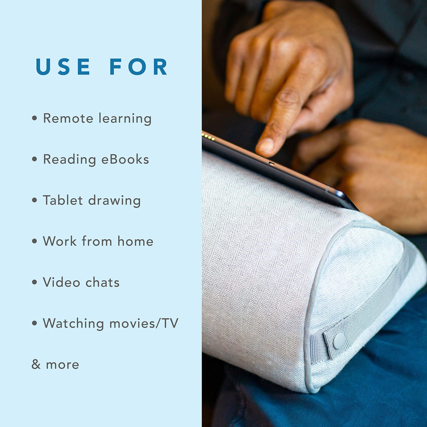 The Unique Design Of The Heritage Tablet Pillow Allows For Comfortable And Efficient Tablet Use. Experience The Conforming Cushion As You Place The Tablet Pillow In Your Lap. Made With Super-Soft, Micro-Fleece Fabric, This Tablet Holder Comes In An Assortment Of Colors. Tuck Your Charger Or Earphones Into The Side Pocket To Keep Them Handy. Dont Forget To Use The Snap-On Handle To Attach The Tablet Pillow To Your Suitcase Or Backpack When Youre On The Go!