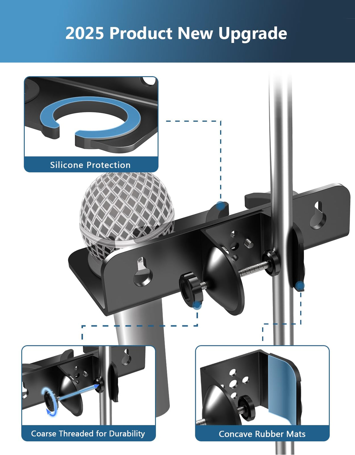 ?Latest Model? Clamp-On Multi Microphone Holder For Mic Stand And Wall Mounted Holds Up To 2 Handheld Dynamic Clamp Mic Clip, Id