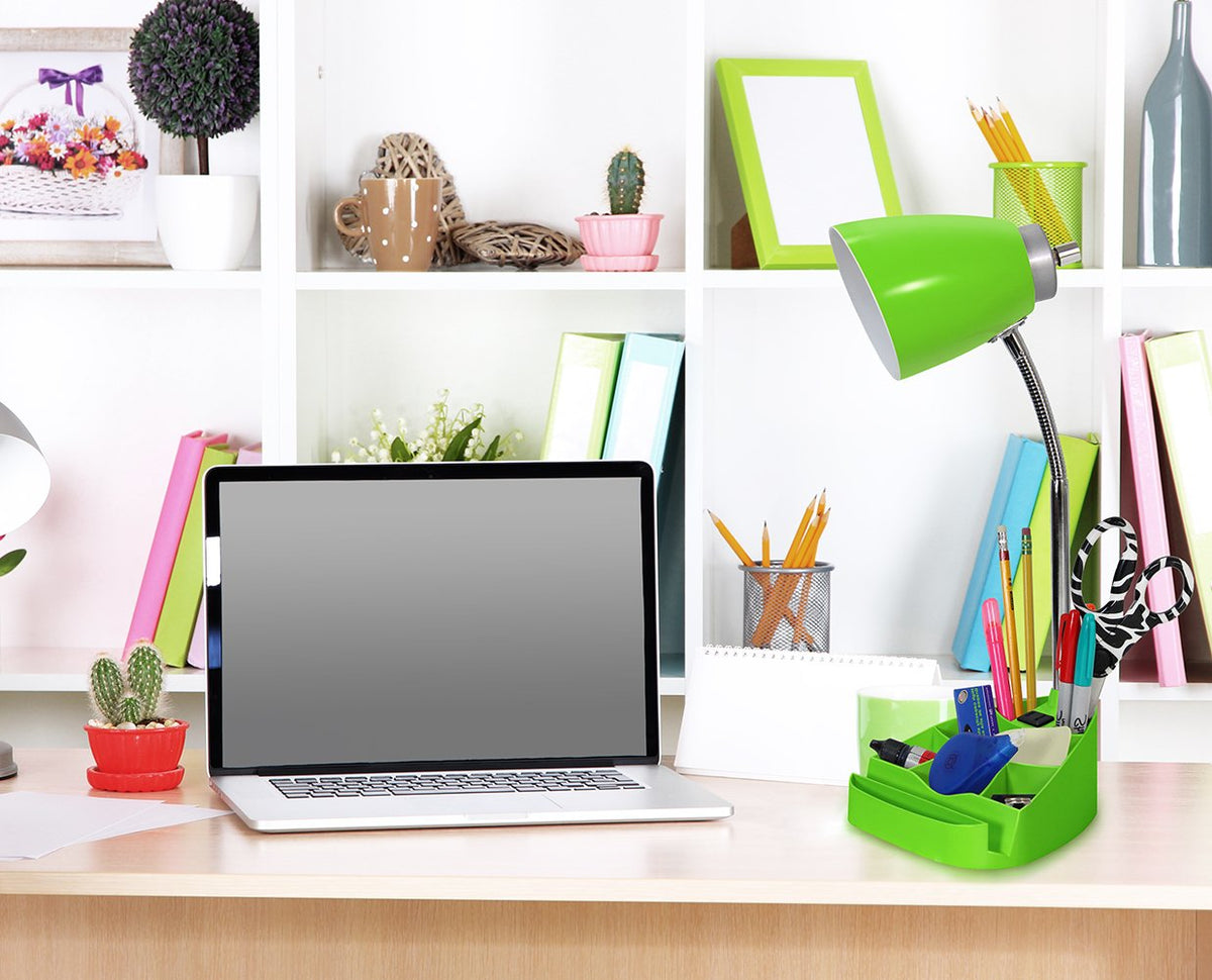 Limelights Ld1057 Grn Gooseneck Organizer Desk Lamp With Ipad Tablet Stand Book Holder And Charging Outlet, Green