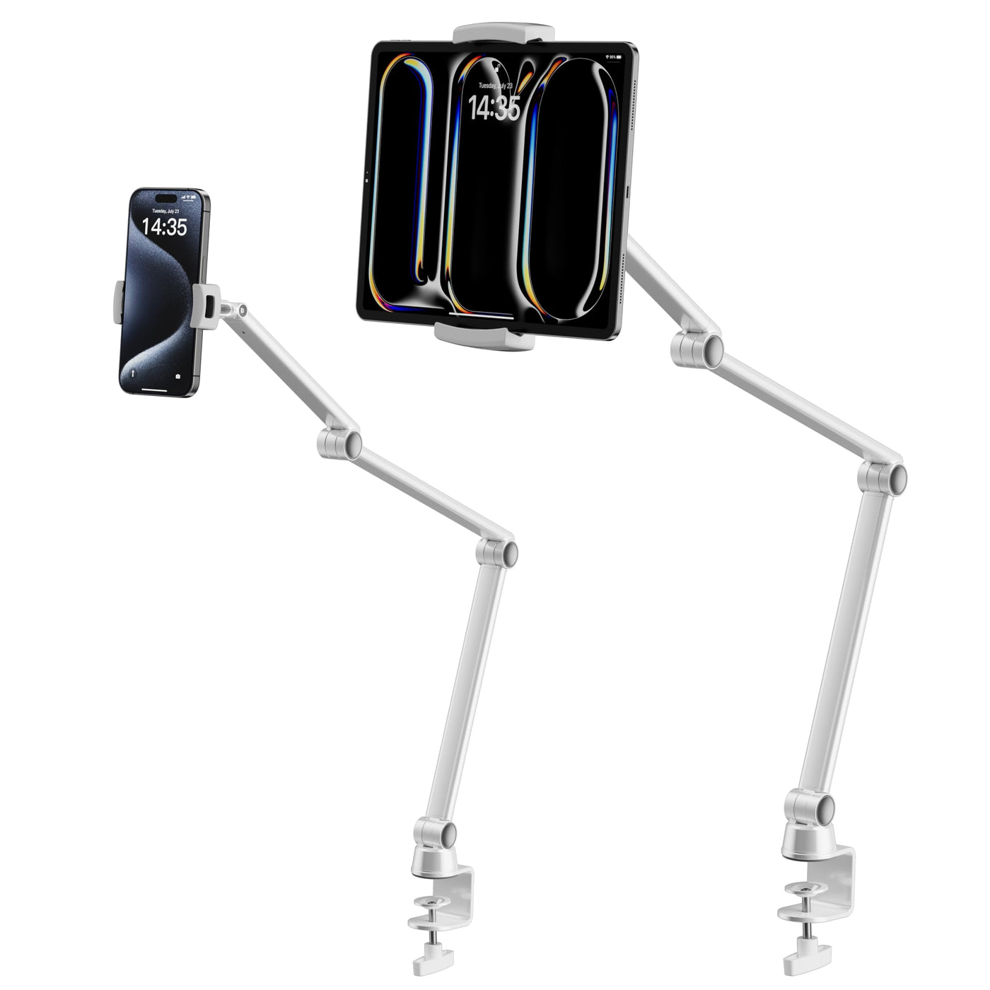 Lululook Tablet Stand, Aluminum Alloy Stretchable Arm Phone Holder Mount, Adjustable Kindle Stand Compatible With Ipad Pro 12.9/Air 13 Inch, Galaxy Tabs, Phones, Kindle, Tablet 4.7' 13'(2 Clips)