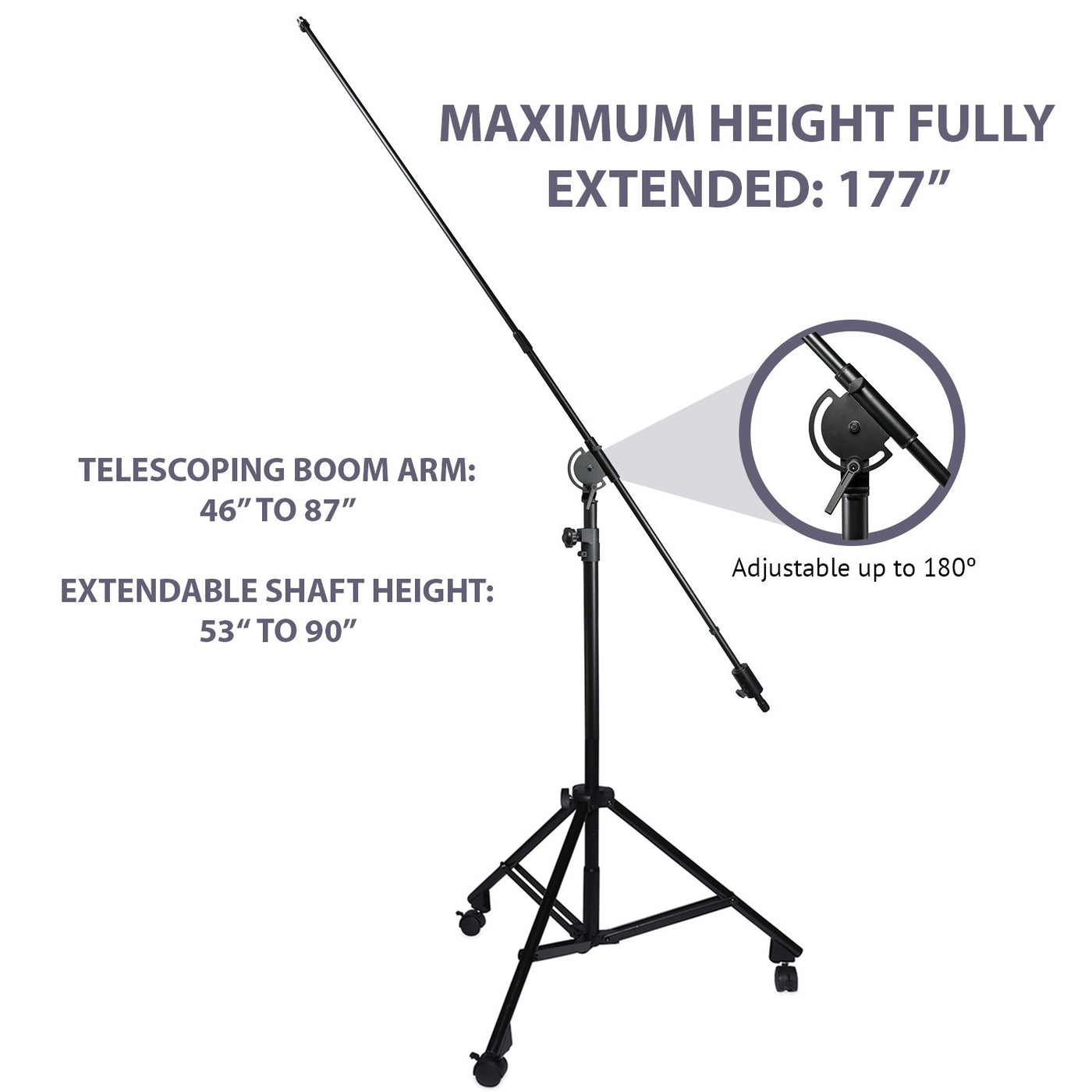Lyxpro Professional Microphone Stand Heavy Duty 90 Studio Overhead Boom Stand With Rolling Caster Wheels, 87 Extra Long Te