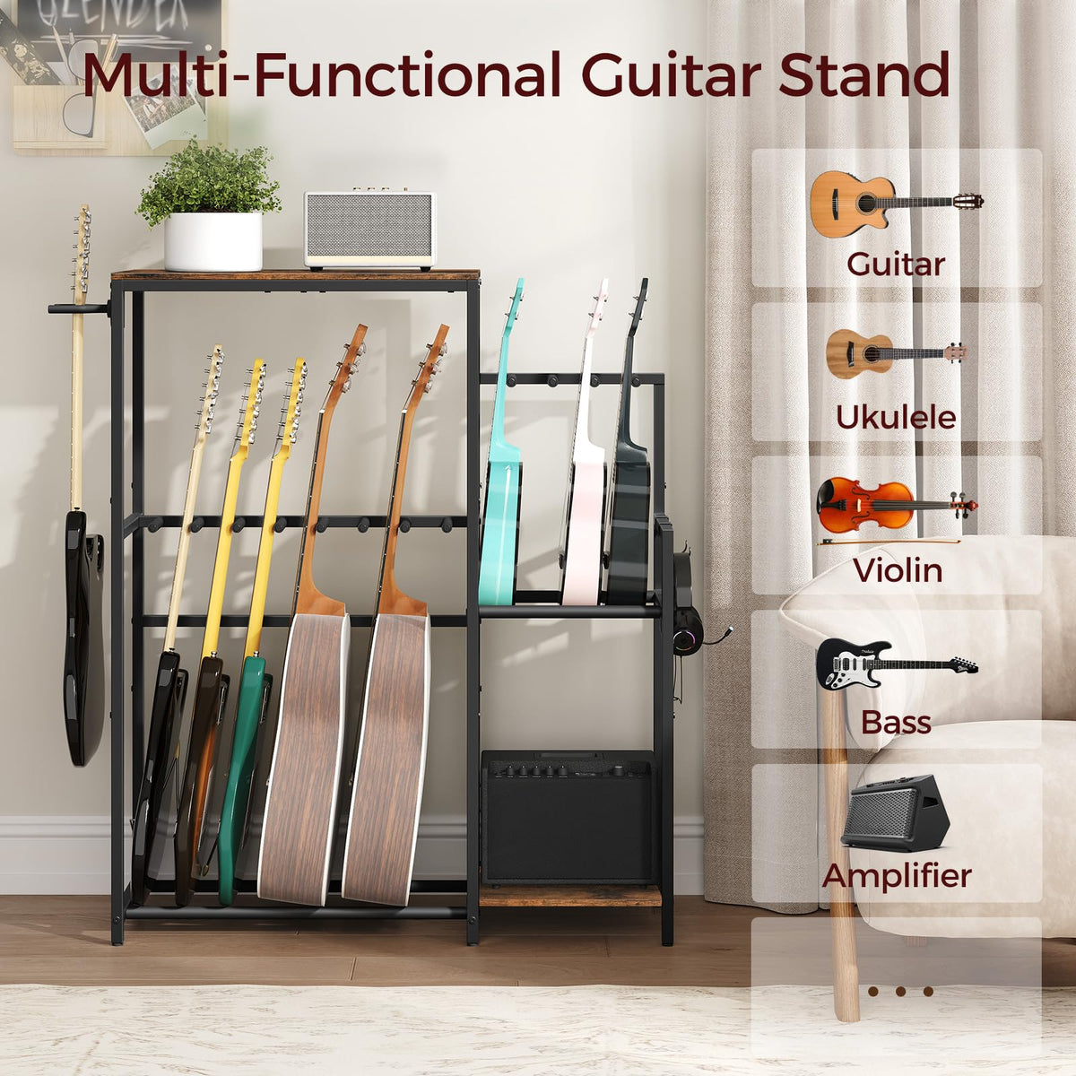 Mahancris Guitar Stand, Multi-Guitar Rack, For Acoustic, Electric Guitar, Bass, Ukulele, Banjo, For 6 - 7 Guitars, Guitar Amp St
