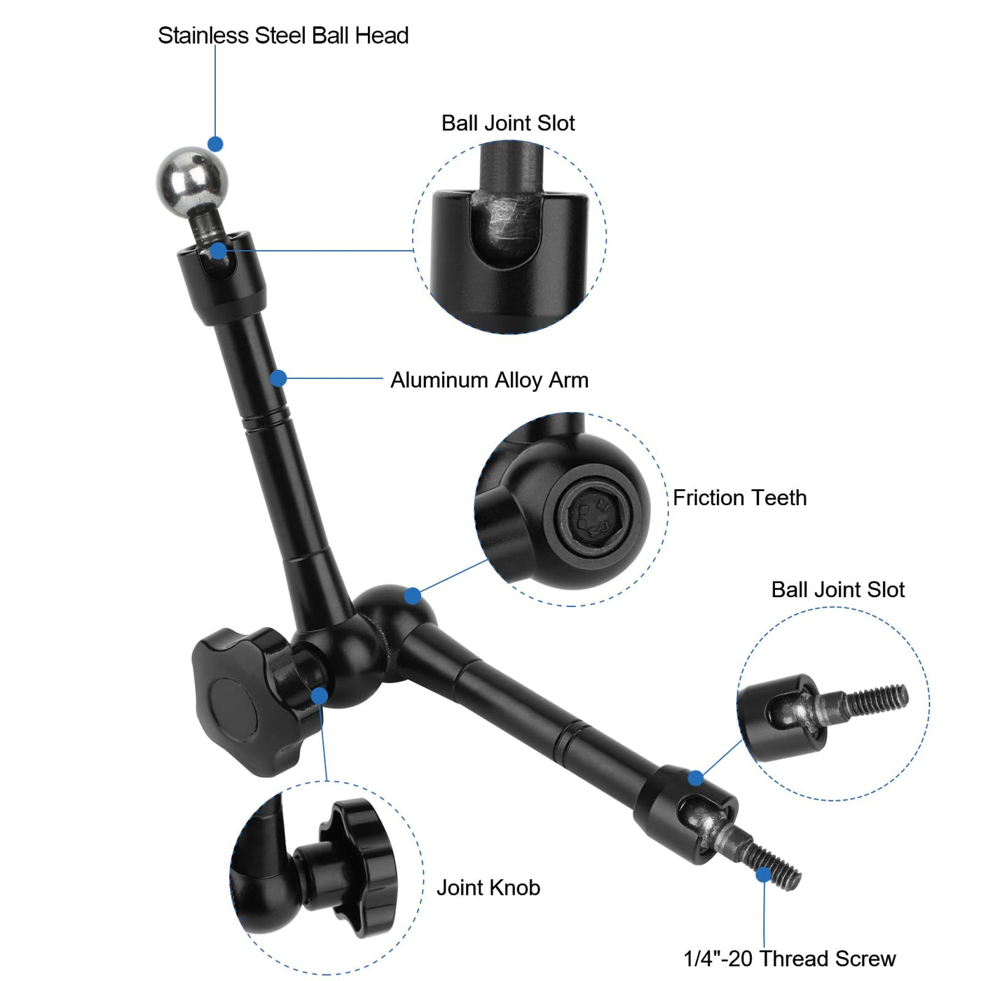 Q: How does the adjustable arm work?A: The adjustable arm features two ball joints that allow for 90° tilt and 360° rotation, making it easy to customize the angle of your tablet for optimal viewing during use.