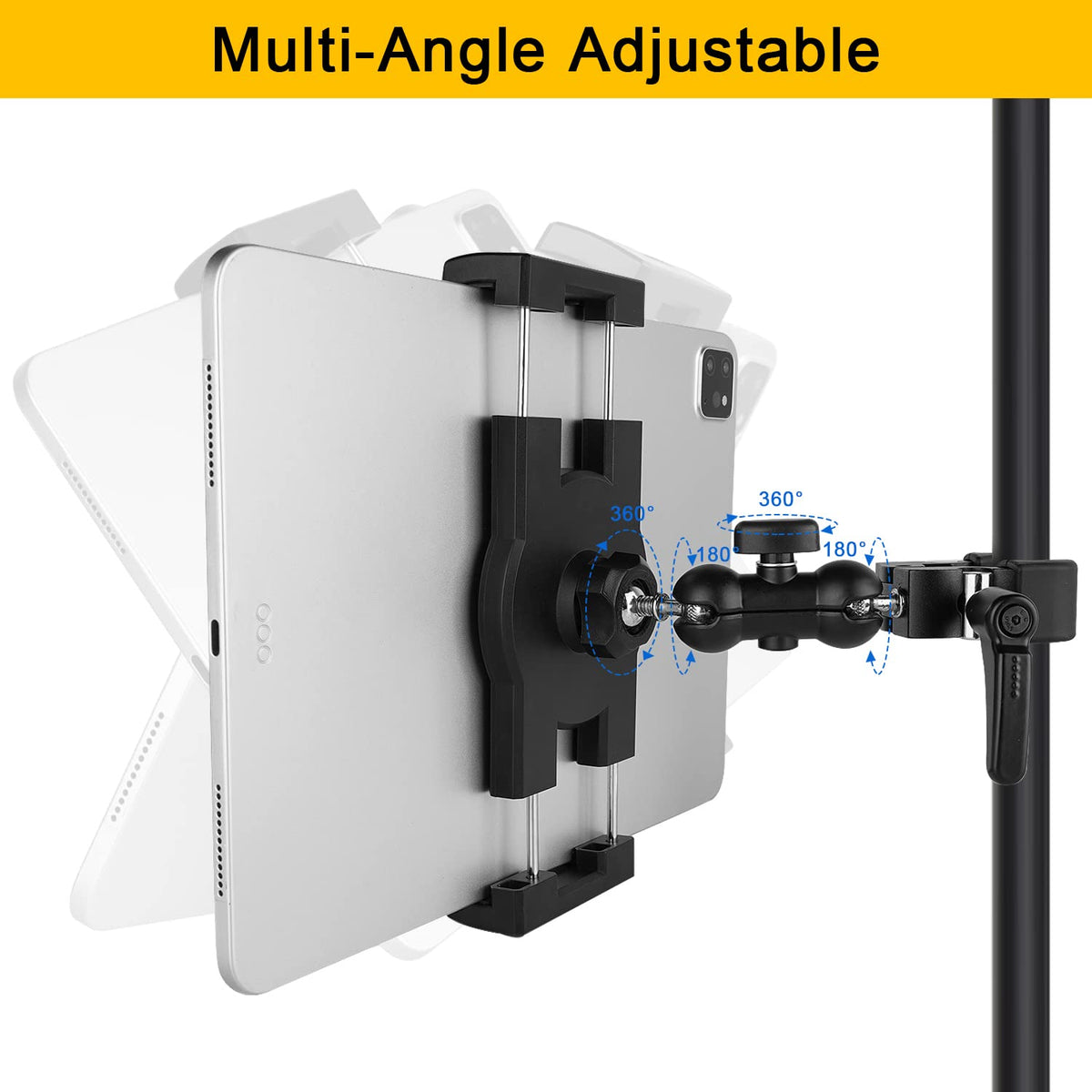 Mippko Tablet Holder For Poles Stroller / Treadmill / Spin Bike / Wheelchair / Golf Cart / Stationary Bike / Music Stand,Compatible With 7~12.9' Ipad / Nexus / Fire Hd / E-Book / Lg G, Adjustable Aluminum Alloy Mount And Clamp