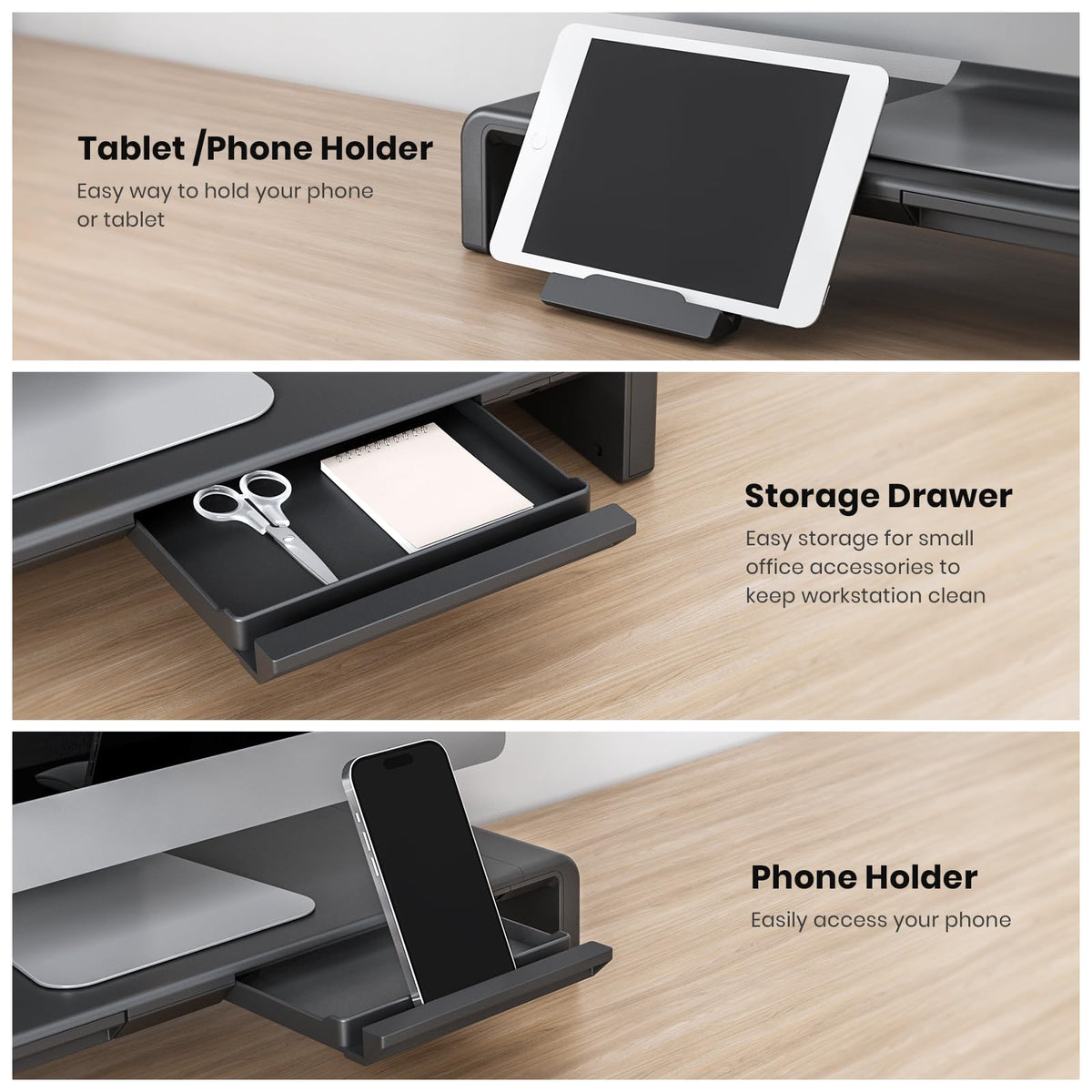 Monitor Stand Riser, Klearlook Foldable Computer Monitor Riser,Height Adjustable Computer Stand, Desk Shelf Riser With Storage D