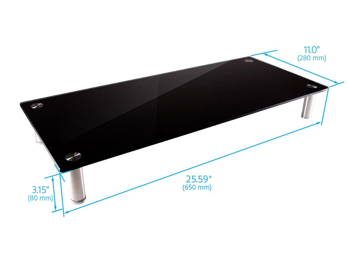 Monoprice Medium Multimedia Desktop Stand, Black Glass (27.6'' X 12.2'' X 3'') Stand & Riser, Laptop Stand, Desktop Tv Stand,