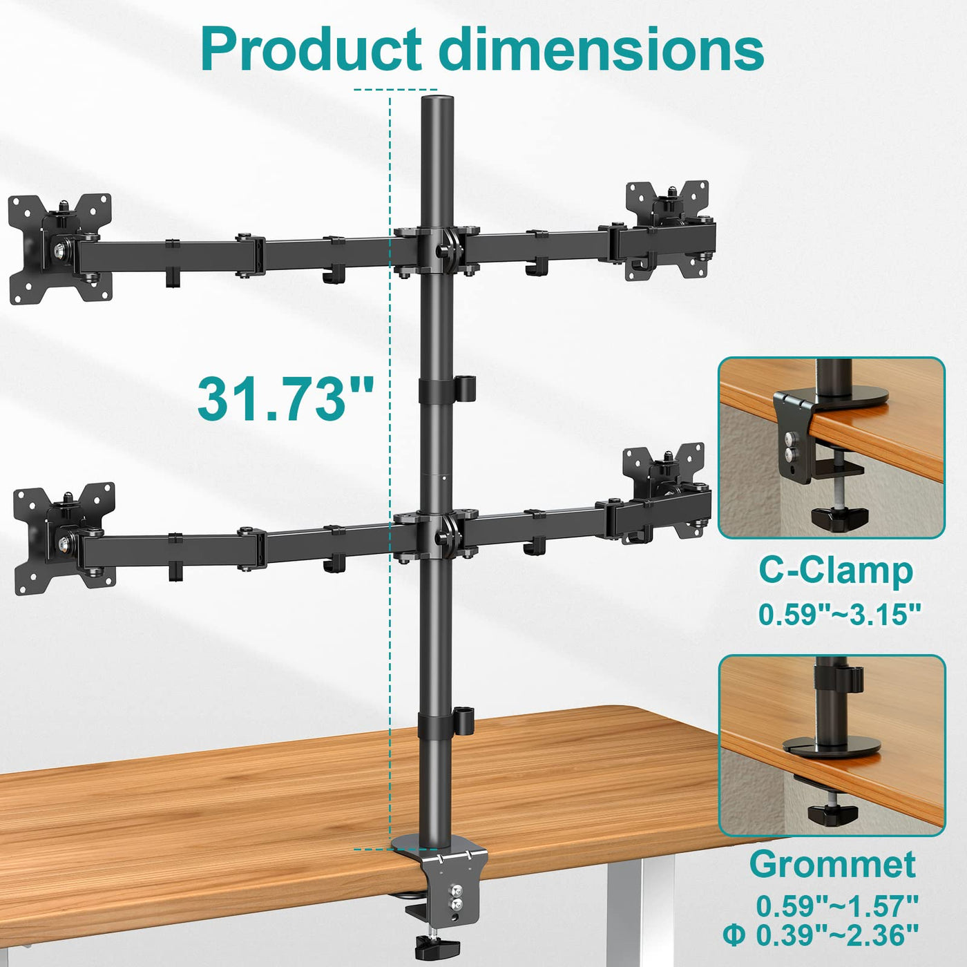 Mount Pro Quad Monitor Stand, 4 Monitor Mount For 13 To 32 Inch Computer Screens, Hold Up To 17.6Lbs Each, Fully Adjustable Stac