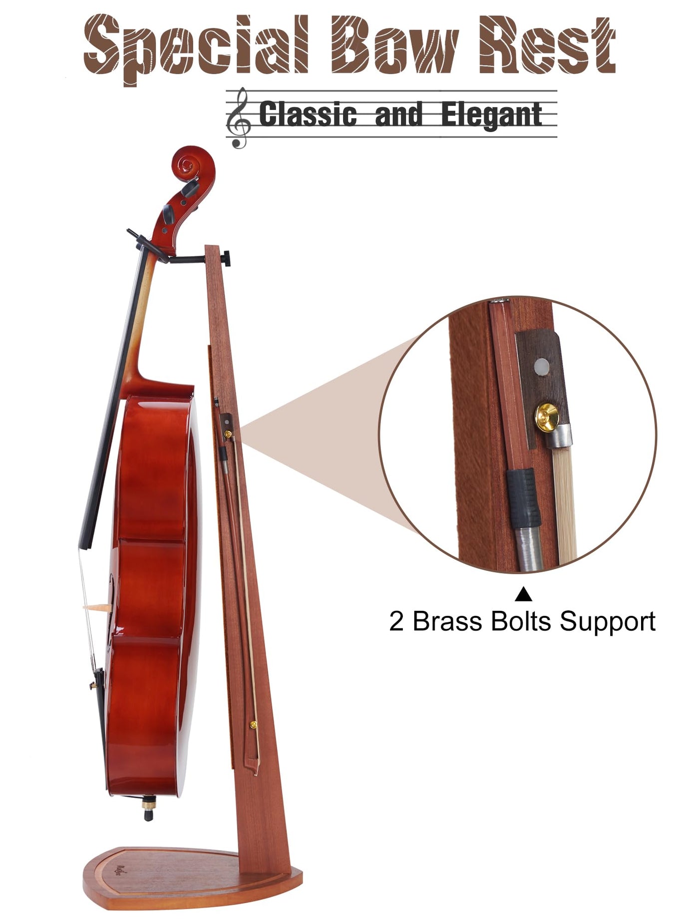 This Beautifully Crafted Wooden Cello Stand Combines Elegance And Practicality, With A Rich Natural Wood Grain That Enhances Any Rooms D Cor. Its Compact Design Saves Space While Securely Holding Your Cello, Offering A Stable Resting Spot. The Stand Includes A Unique Bow Holder, Ensuring Easy Access And Adding A Classic Touch To Your Display. Felt Padding Protects Your Cello From Scratches, And Silicone Feet Prevent Tipping. Suitable For Cellos Of All Sizes (1/8 To 4/4), This Stand Is Perfect For Musicians Of Any Level, Turning Your Instrument Into A Stunning Decorative Piece.